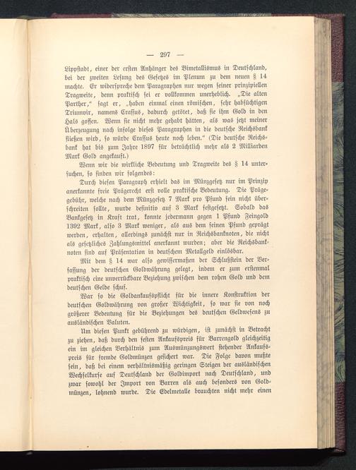 Mit dem § 14 war also gewissermaßen der Schlußstein der Ver-fassung der deutschen Goldwährung gelegt, indem er zum erstenmalpraktisch eine unverrückbare Beziehung zwischen dem rohen Gold und demdeutschen Gelde schuf.