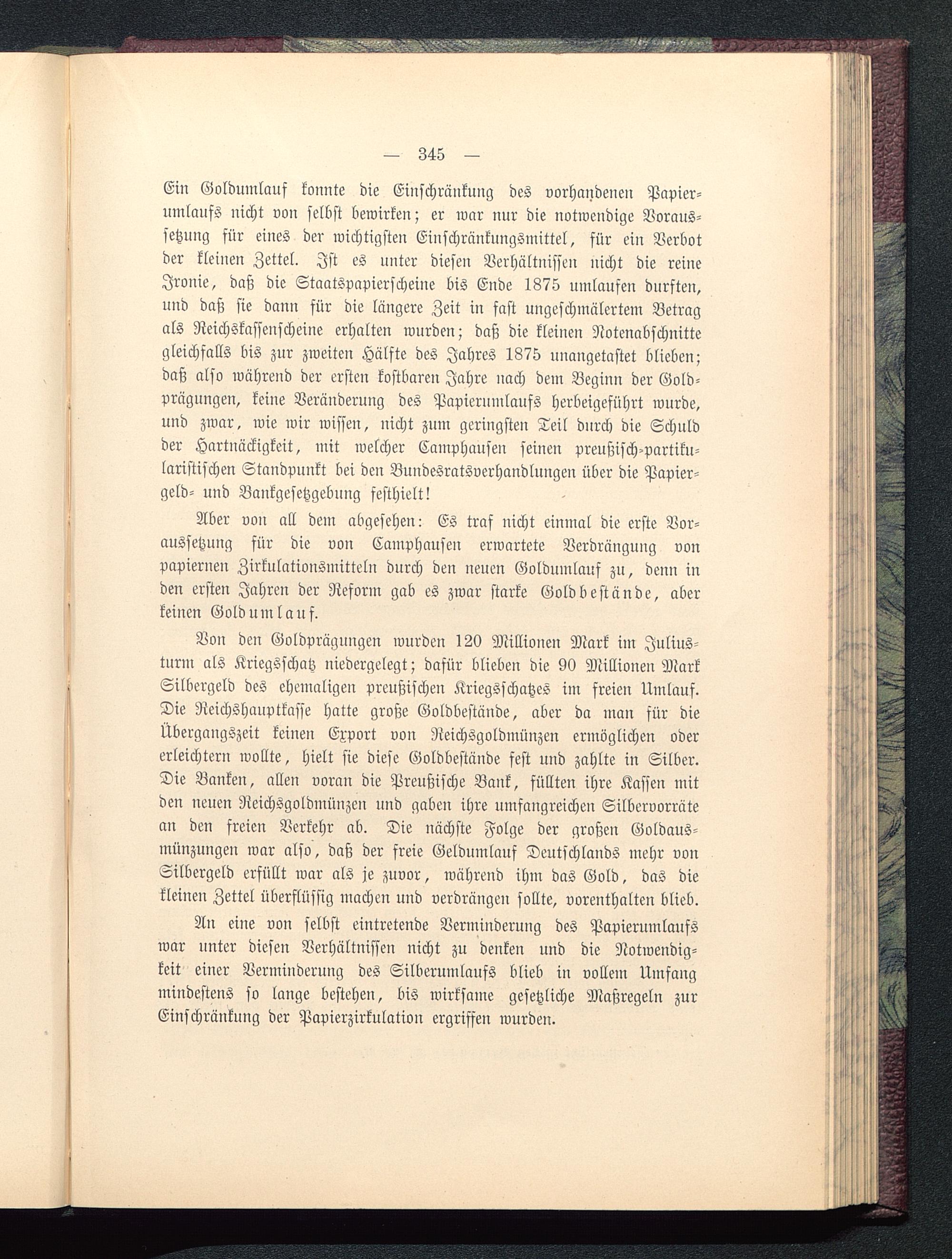 Aber von all dem abgesehen: Es traf nicht einmal die erste Vor-aussetzung für die von Camphausen erwartete Verdrängung vonpapiernen Zirkulationsmitteln durch den ueucn Goldumlauf zu, deuu inden ersten Jahren der Reform gab es zwar starke Goldbestände, aberkeinen Gold nm lau f.