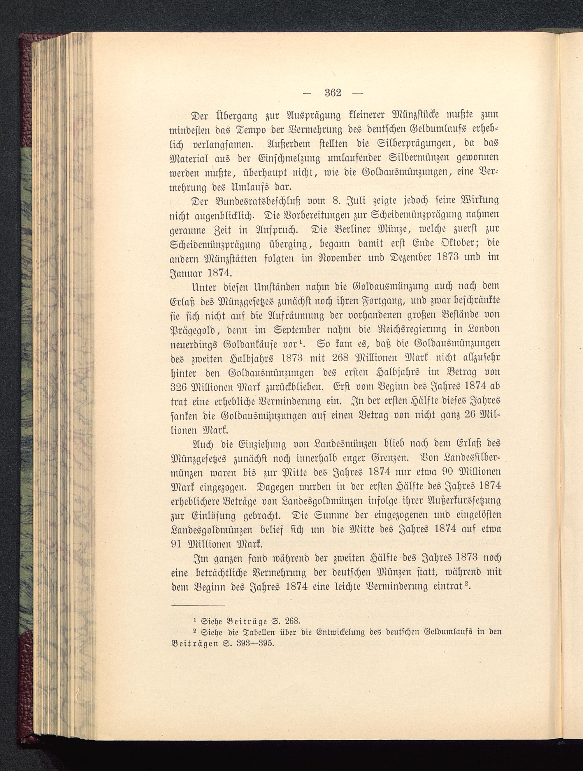 Im ganzen fand während der zweiten Hälfte des Jahres 1873 nocheine beträchtliche Vermehrung der deutschen Münzen statt, während mitdem Beginn des Jahres 1874 eine leichte Verminderung eintrat ^.