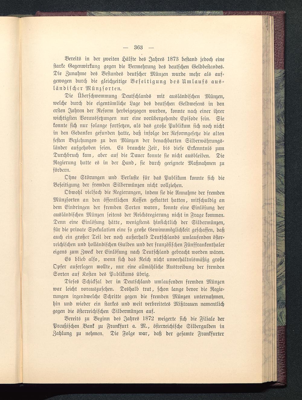 Bereits in der zweiten Hälfte des Jahres 1873 bestand jedoch einestarke Gegenwirkung gegen die Vermehrung des deutschen Geldbestandes.Die Zunahme des Bestandes deutscher Münzen wurde mehr als auf-gewogen durch die gleichzeitige Beseitigung des Umlaufs aus-ländischer Müuzsorten.