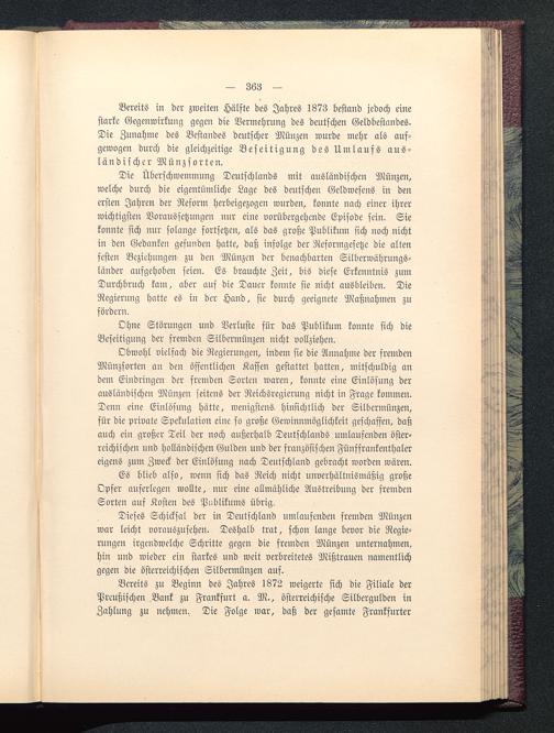 Bereits zu Beginn des Jahres 1872 weigerte sich die Filiale derPreußischen Bank zu Frankfurt a. M., österreichische Silbergulden inZahlung zu nehmen. Die Folge war, daß der gesamte Frankfurter