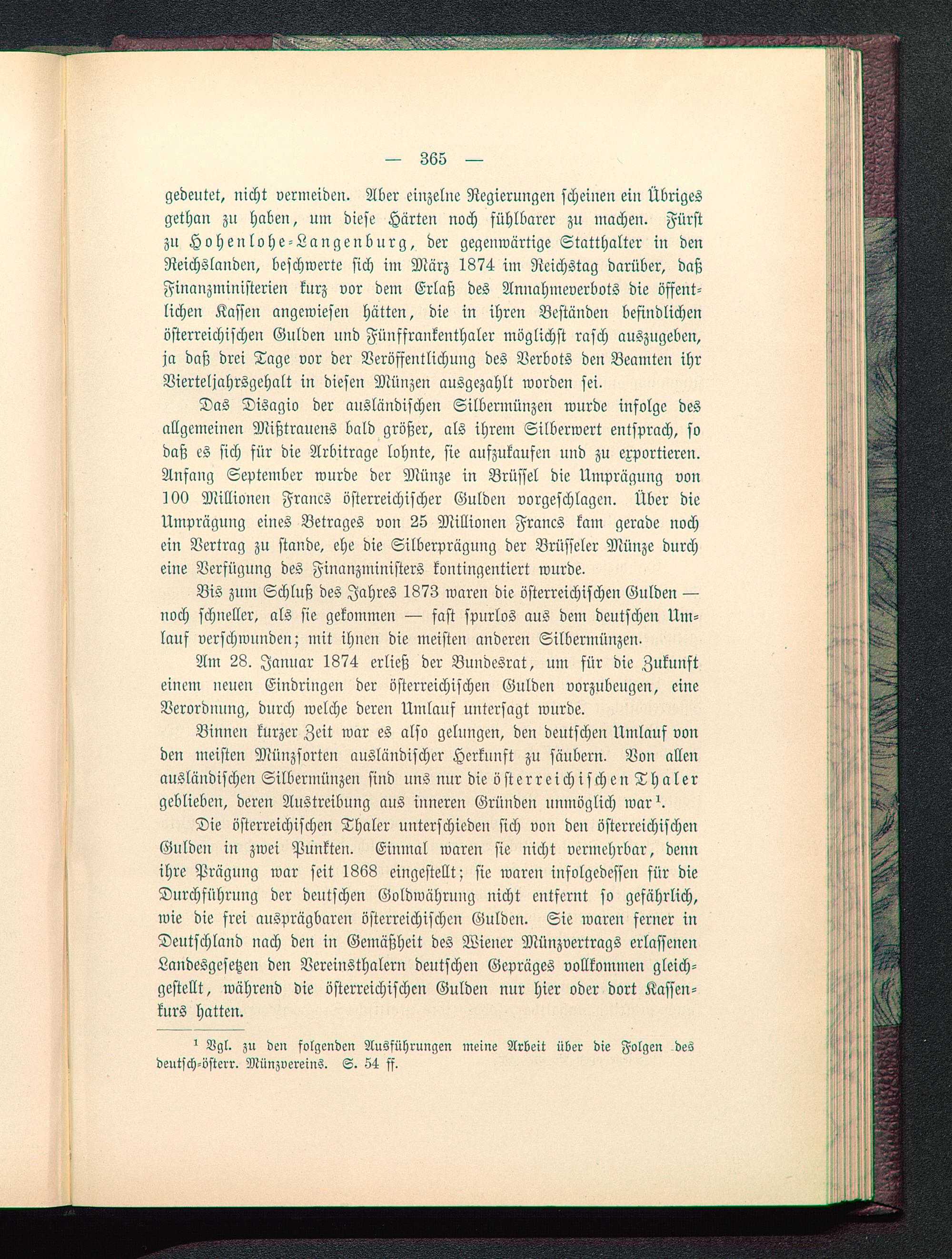 Am 28. Januar 1874 erließ der Bundesrat, um für die Zukunfteinem neueu Eindringen der österreichischen Gulden vorzubeugen, eineVerordnung, durch welche deren Umlauf untersagt wurde.