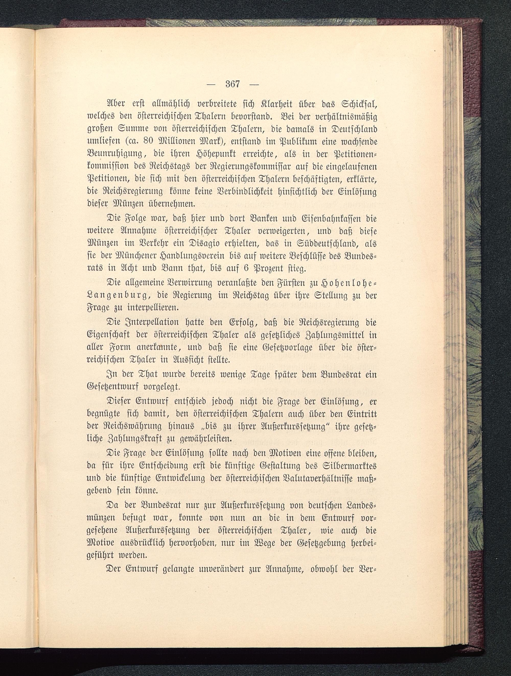 Die Frage der Einlösung sollte nach den Motiven eine offene bleiben,da für ihre Entscheidung erst die künftige Gestaltung des Silbermarktesund die künftige Entwickelung der österreichischen Valutaverhältnisse maß-gebend sein könne.