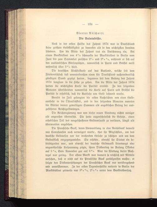 Noch in der ersten Hälfte des Jahres 1874 war in Deutschland keine größere Geldflüssigkeit zu bemerken als in den wichtigsten fremdenLändern. Um die Mitte des Jahres trat ein Umschwung ein. Beieinein Bankdiskont von 4°/o schwankte der Marktdiskont in Berlin vomJuni bis zum September zwischen 2Vs und 2^4 °/o, während er sich aufden ausländischen Börsenplätzen, namentlich in Paris und Brüssel meistwesentlich über 3°/o hielt.