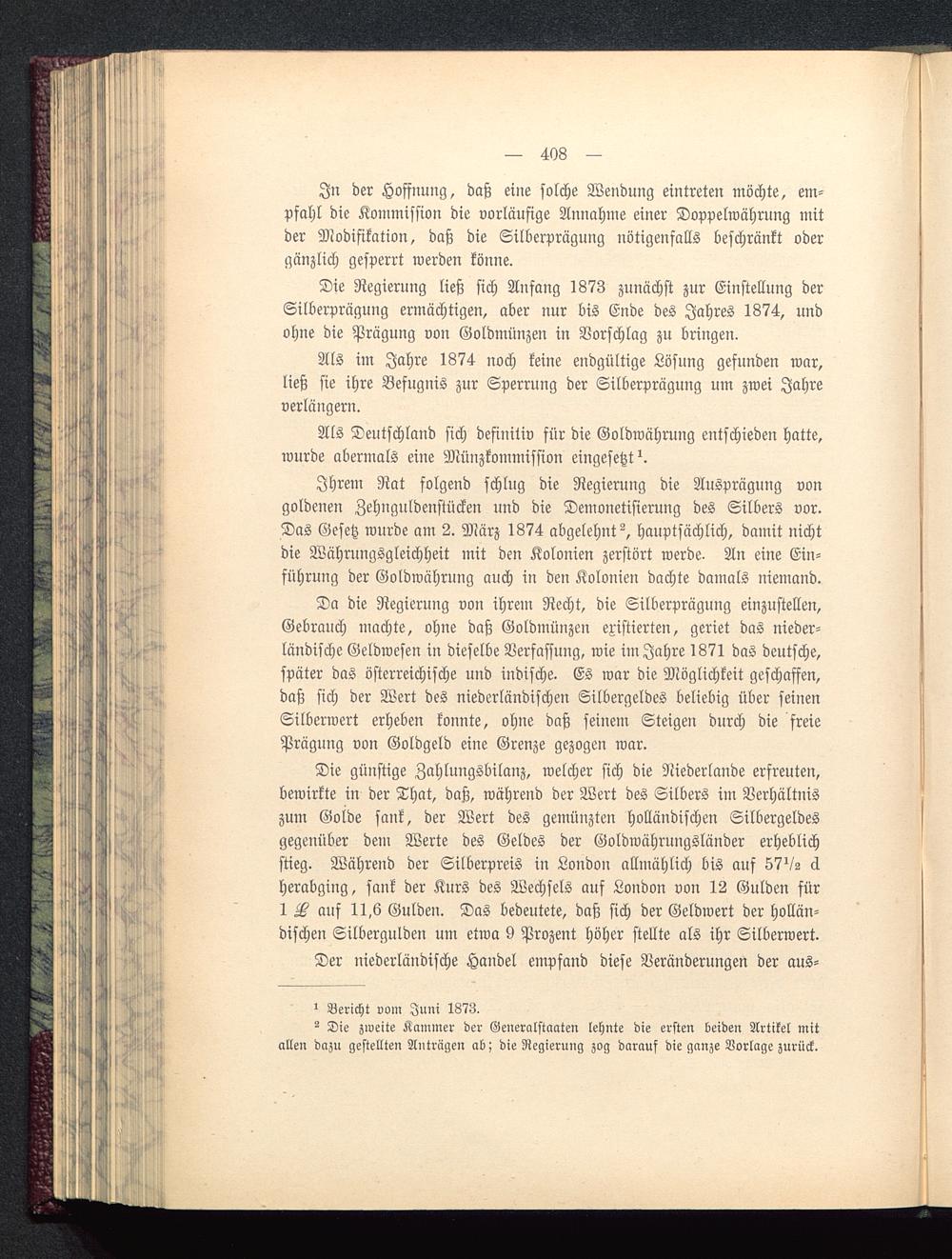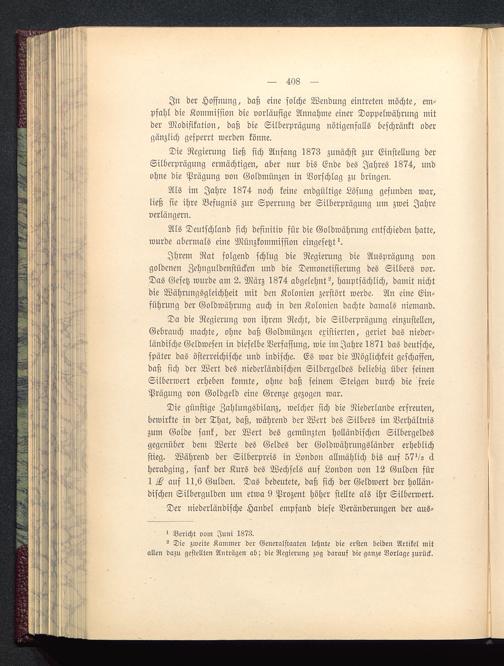Ihrem Rat folgend schlug die Regierung die Ausprägung vongoldenen Zehnguldenstücken und die Demonetisierung des Silbers vor.Das Gesetz wurde am 2. März 1874 abgelehnt ^, hauptsächlich, damit nichtdie Währungsgleichheit mit den Kolonien zerstört werde. An eine Ein-führung der Goldwährung auch iu deu Kolonien dachte damals niemand.