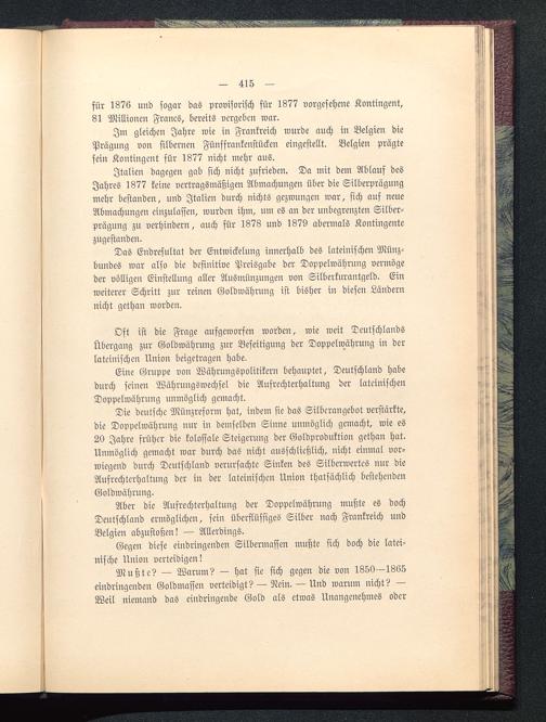 Oft ist die Frage aufgeworfen worden, wie weit Deutschlands Übergang zur Goldwährung zur Beseitigung der Doppelwährung in derlateinischen Union beigetragen habe.