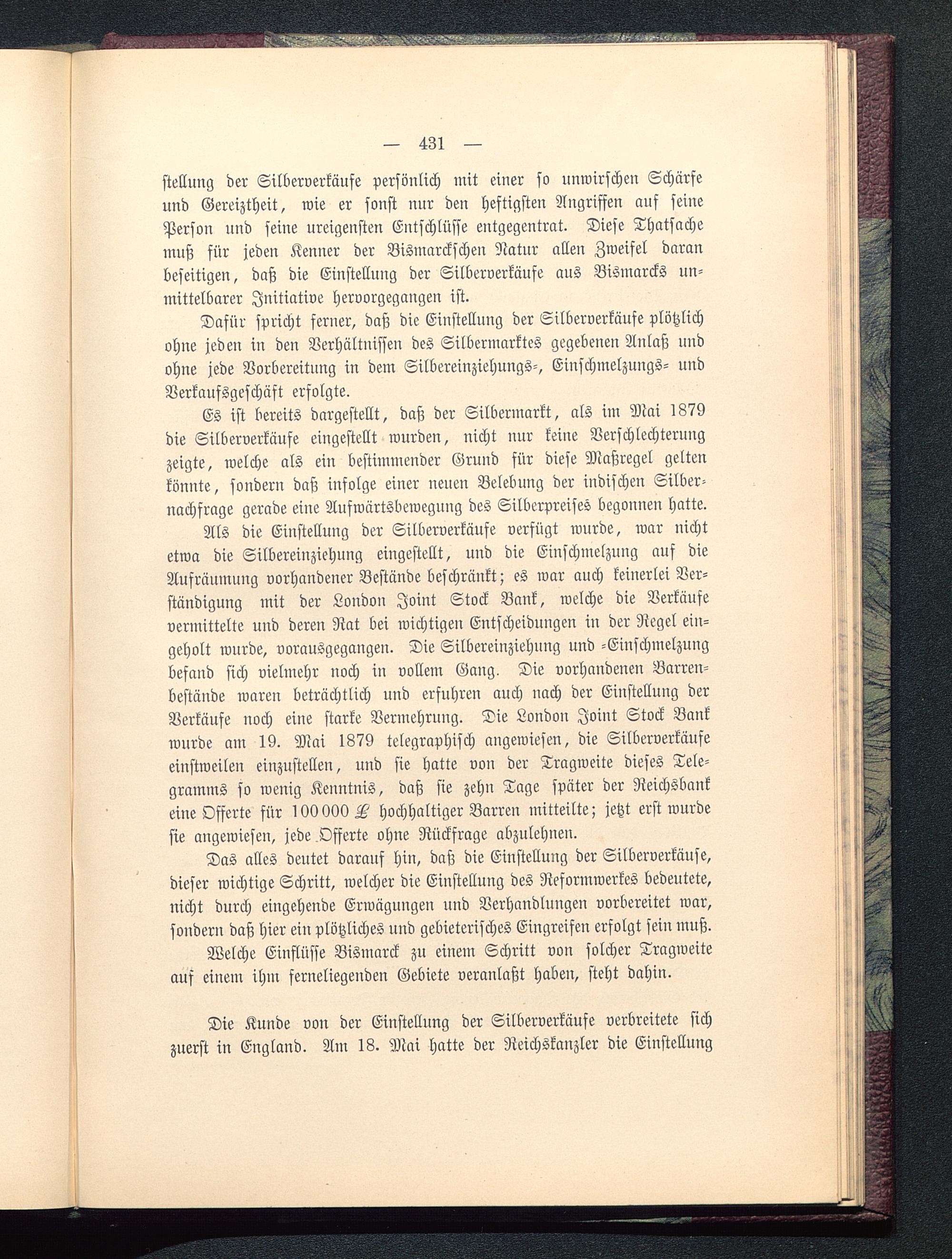 Das alles deutet darauf hin, daß die Einstellung der Silberverkäuse,dieser wichtige Schritt, welcher die Einstelluug des Neformwerkes bedeutete,nicht durch eingehende Erwäguugen und Verhandlungen vorbereitet war,sondern daß hier ein plötzliches nnd gebieterisches Eingreifen erfolgt sein muß.