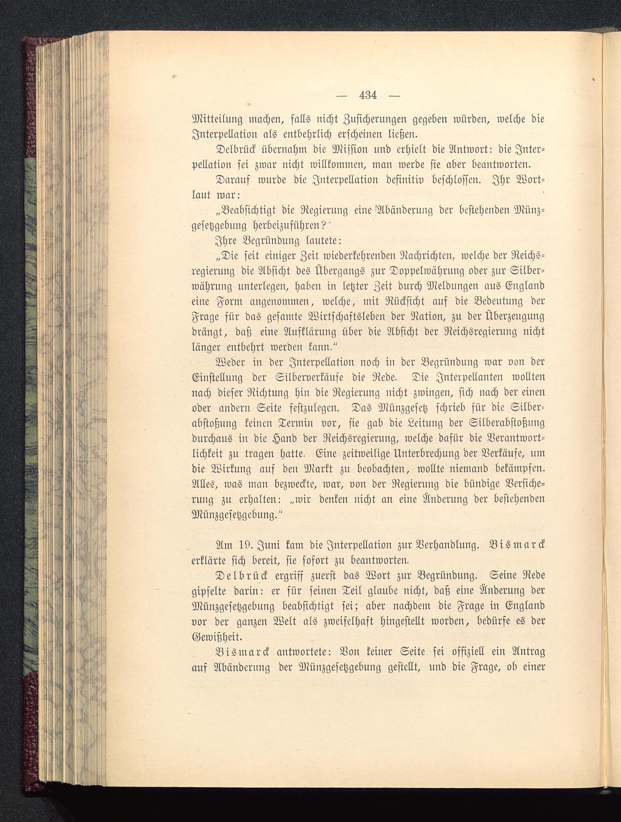 Delbrück übernahm die Mission und erhielt die Antwort: die Inter-pellation sei zwar nicht willkommen, man werde sie aber beantworten.