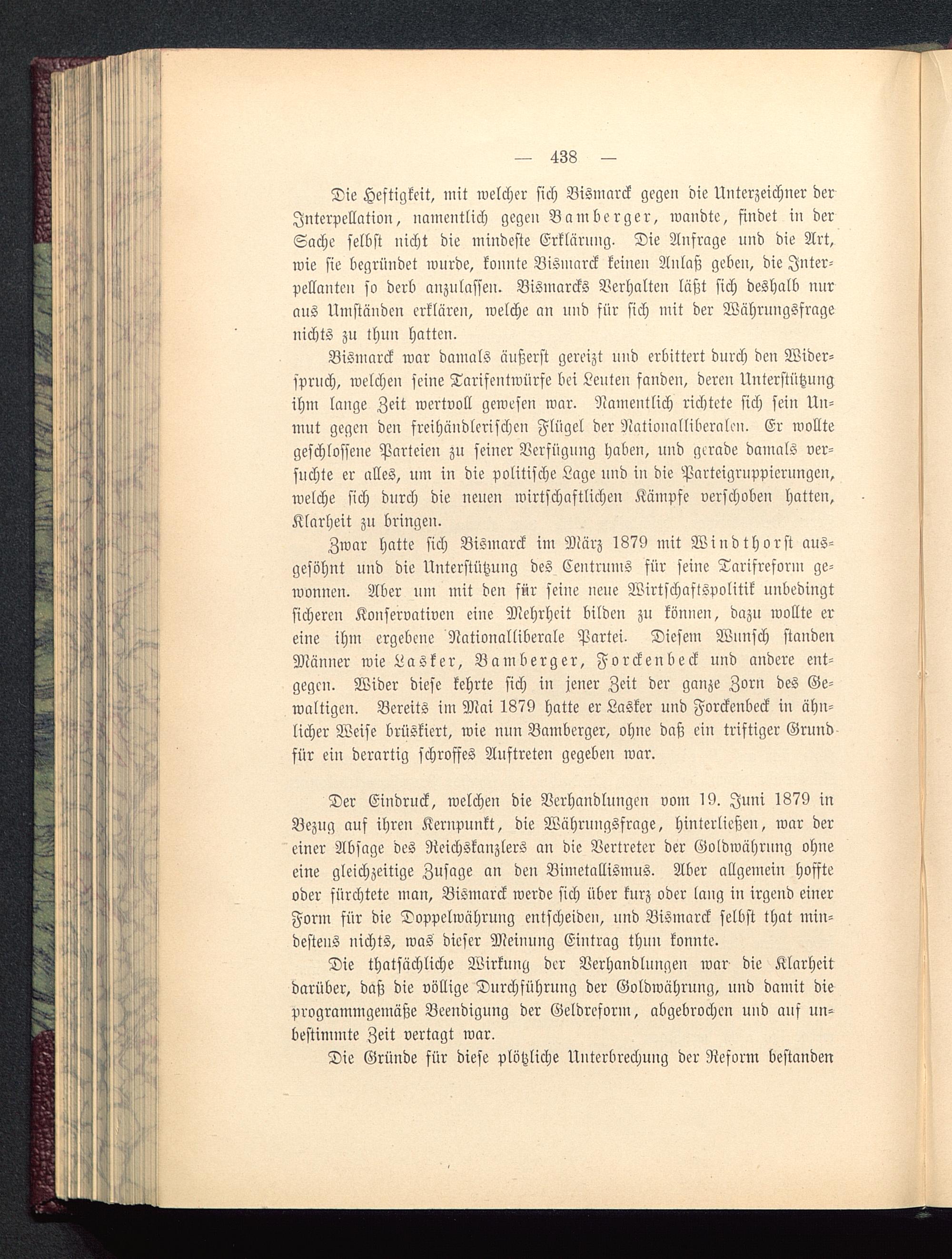 Die Heftigkeit, mit welcher sich Bismarck gegen die Unterzeichner derInterpellation, namentlich gegen Bam berger, wandte, findet in derSache selbst nicht die mindeste Erklärung, Die Anfrage und die Art,wie sie begründet wurde, konnte Bismarck keinen Anlaß geben, die Inter-pellanten so derb anzulassen. Bismarcks Verhalten läßt sich deshalb nuraus Umständen erklären, welche an und für sich mit der Währungsfragenichts zu thun hatten.
