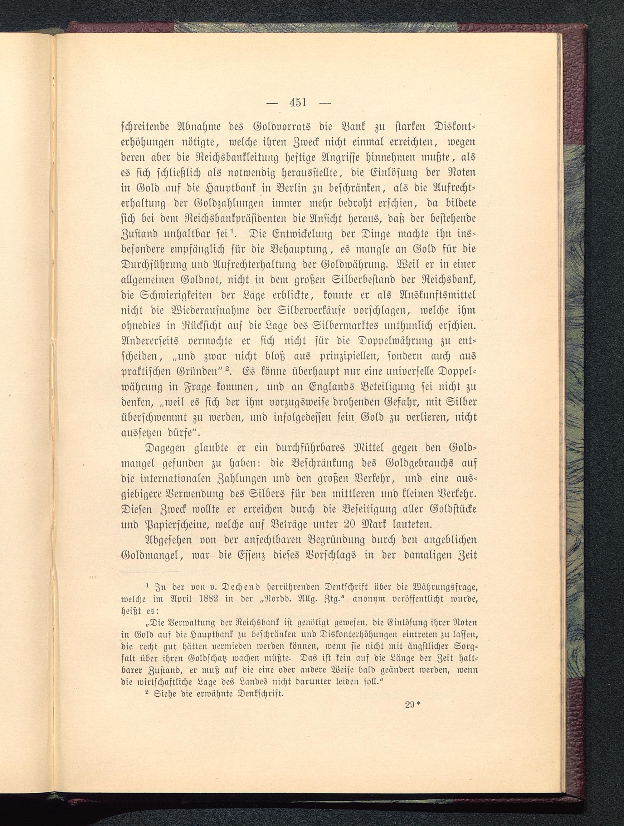 1 In der vo» v. Dechend herrührenden Denkschrift über die Währungsfrage,welche im April 1882 in der „Nordd. Allg. Ztg." anonym veröffentlicht wurde,heißt es: