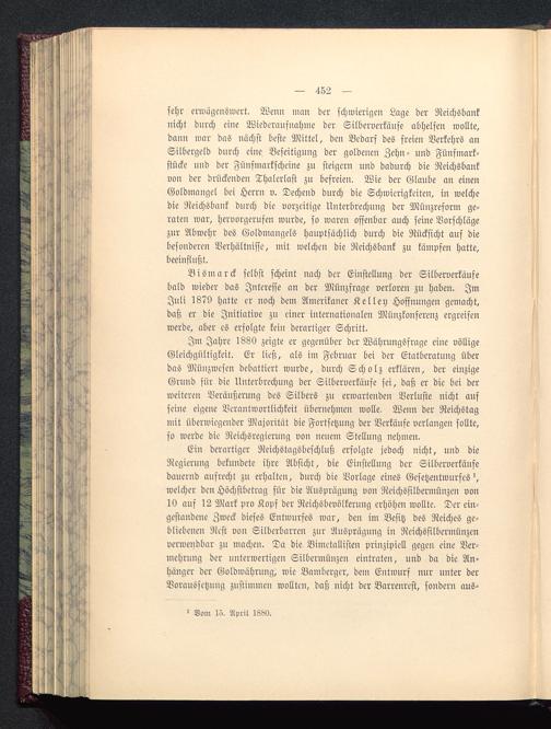 Im Jahre l880 zeigte er gegenüber der Währungsfrage eine völligeGleichgültigkeit. Er ließ, als im Februar bei der Etatberatung überdas Münzwesen debattiert wurde, durch Scholz erklären, der einzigeGrund für die Unterbrechung der Silberverkaufe sei, daß er die bei derwetteren Veräußerung des Silbers zu erwartenden Verluste nicht aufseine eigene Verantwortlichkeit übernehmen wolle. Wenn der Reichstag mit überwiegender Majorität die Fortsetzung der Verkäufe verlangen sollte,so werde die Reichsregierung von nenem Stellung nehmen.