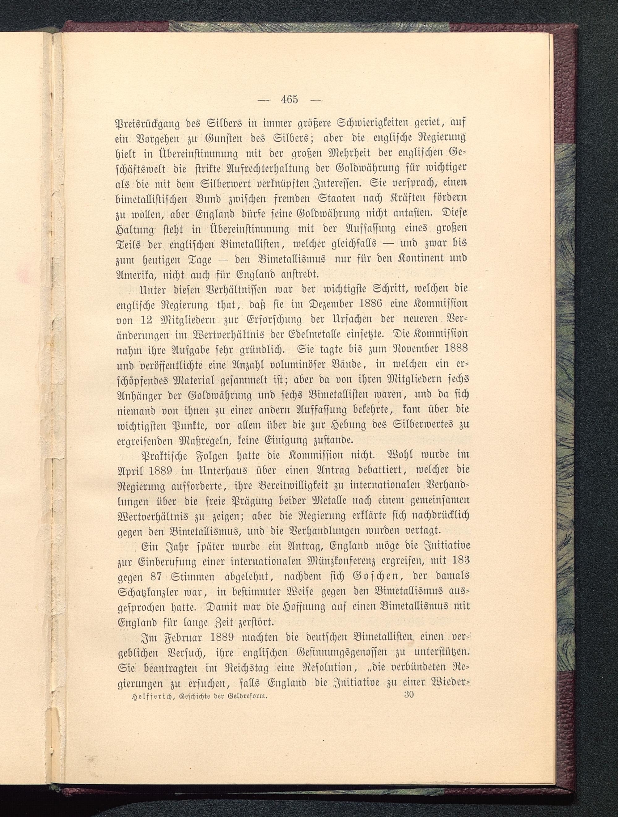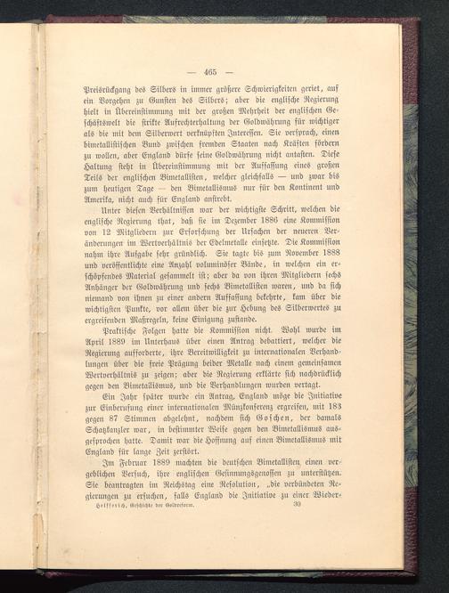 Ein Jahr später wurde ein Antrag, England möge die Initiativezur Einberufung eiuer internationalen Münzkonferenz ergreifen, mit 183gegen 87 Stimmen abgelehnt, nachdem sich Goschen, der damalsSchatzkanzler war, in bestimmter Weise gegen den Bimetallismus aus-gesprochen hatte. Damit war die Hoffnung auf einen Bimetallismus mitEngland für lange Zeit zerstört.
