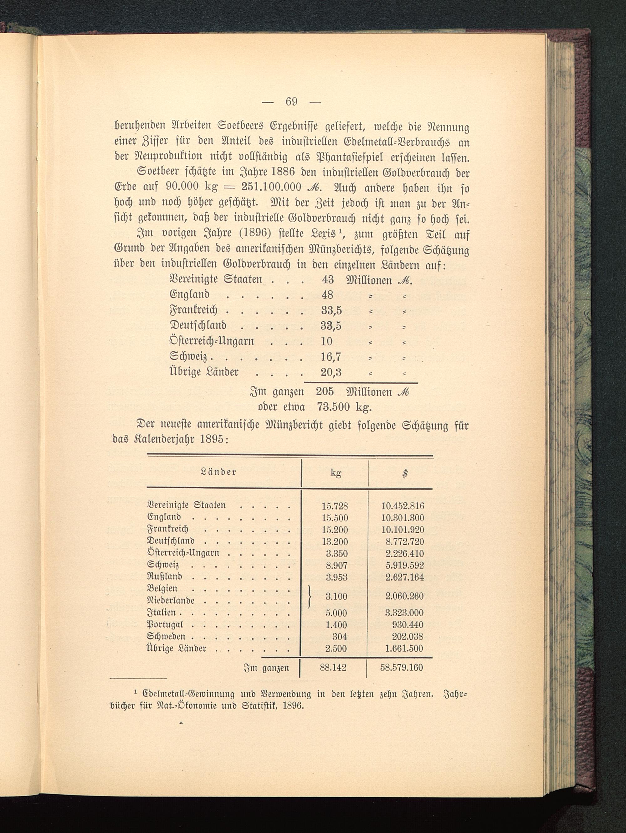 Soetbeer schätzte im Jahre 1886 den industriellen Goldverbrauch derErde auf 90.000 251.100.000 ^. Auch andere haben ihn so