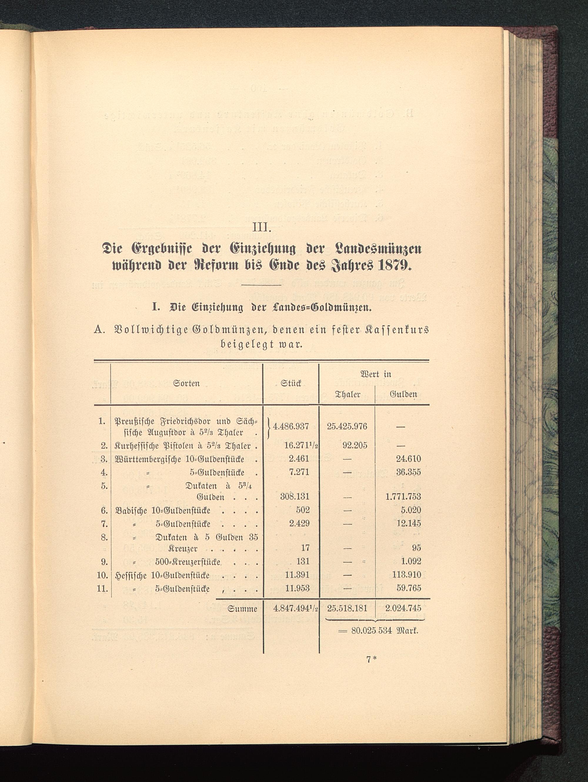 Die Ergebnisse der Einziehung der Landesmünzenwährend der Reform bis Ende des Jahres 1879.