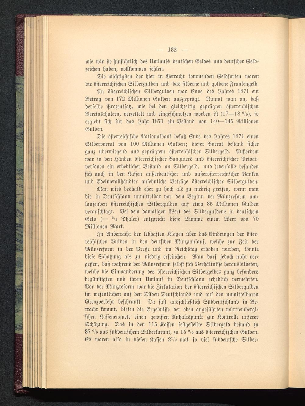 An österreichischen Silbergulden war Ende des Jahres 1871 einBetrag von 172 Millionen Gulden ausgeprägt. Nimmt man an, daßderselbe Prozentsatz, wie bei den gleichzeitig geprägten österreichischenVereinsthalern, verzettelt und eingeschmolzen worden ist (17—18 °/o), soergiebt sich für das Jahr 1871 ein Bestand von 140—145 MillionenGulden.