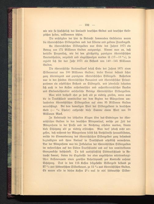 Die österreichische Nationalbank besaß Ende des Jahres 1871 einenSilbervorrat von 100 Millionen Gulden; dieser Vorrat bestand sicherganz liberwiegend aus geprägtem österreichischen Silbergeld. Außerdemwar in den Händen österreichischer Banquiers und österreichischer Privat-personen ein erheblicher Bestand an Silbergeld, und jedenfalls befandensich auch in den Kassen außerdeutscher und außeröstcrreichischer Bankenund Edelmetallhändler ansehnliche Beträge österreichischer Silbergulden.