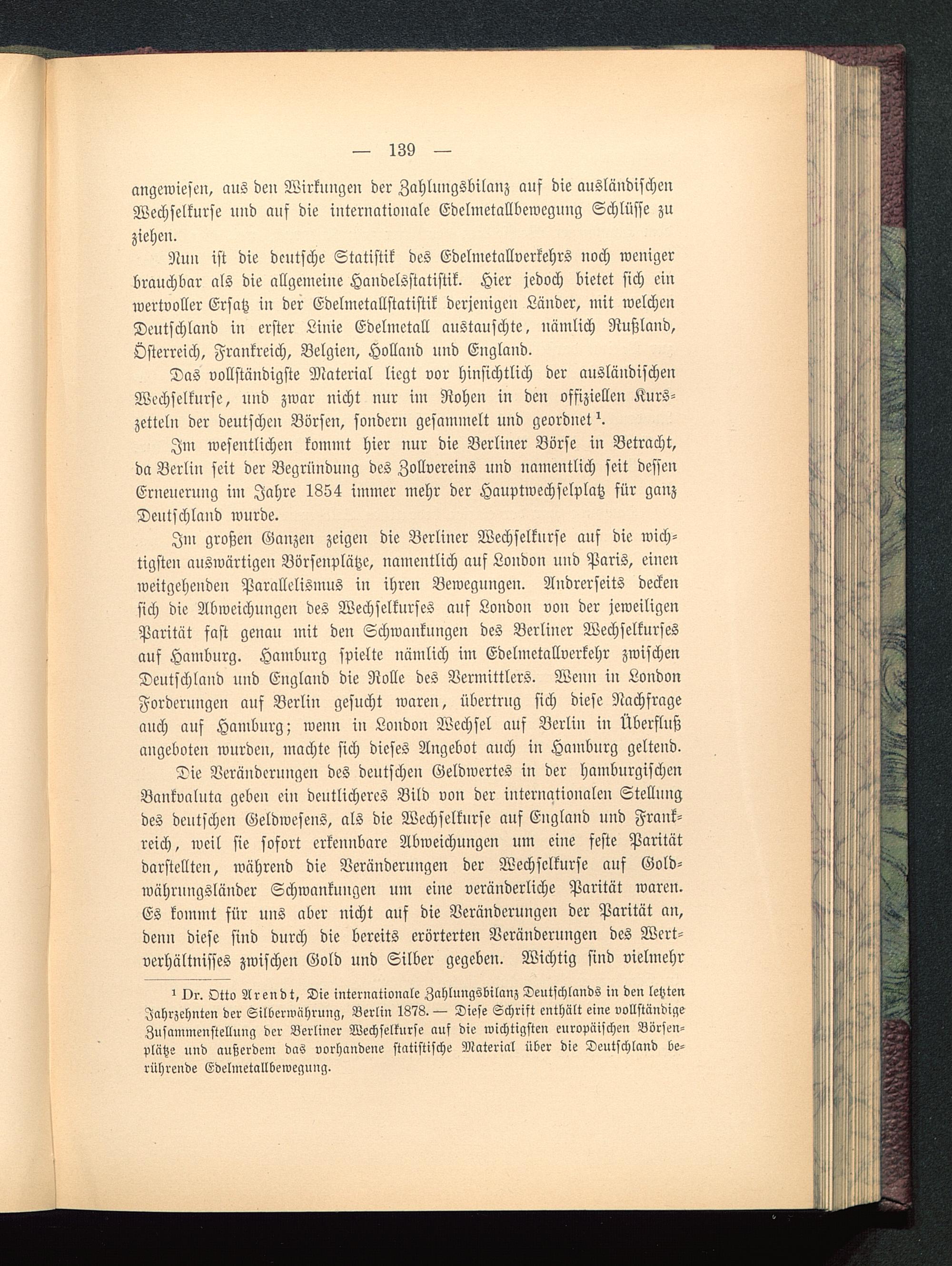 ! Dr. Otto Arendt , Die internationale Zahlungsbilanz Deutschlands in den letztenJahrzehnten der Silberwährung, Berlin 1878. — Diese Schrift enthält eine vollständigeZusainincnstellung der Berliner Wechselkurse auf die wichtigsten europäischen Börsen-plätze und außerdem das vorhandene statistische Material über die Deutschland be-rührende Edelmetallbewegung.
