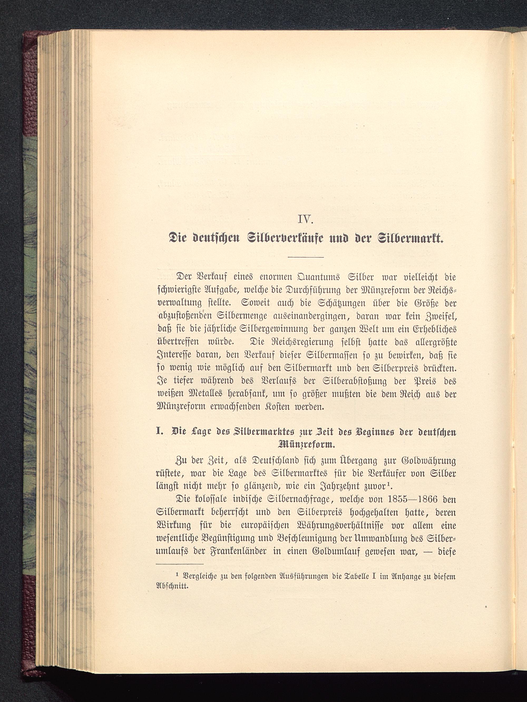 Zu der Zeit, als Deutschland sich zum Übergang zur Goldwährungrüstete, war die Lage des Silbermarktes sür die Verkäufer von Silberlängst nicht mehr so glänzend, wie ein Jahrzehnt zuvor ^.