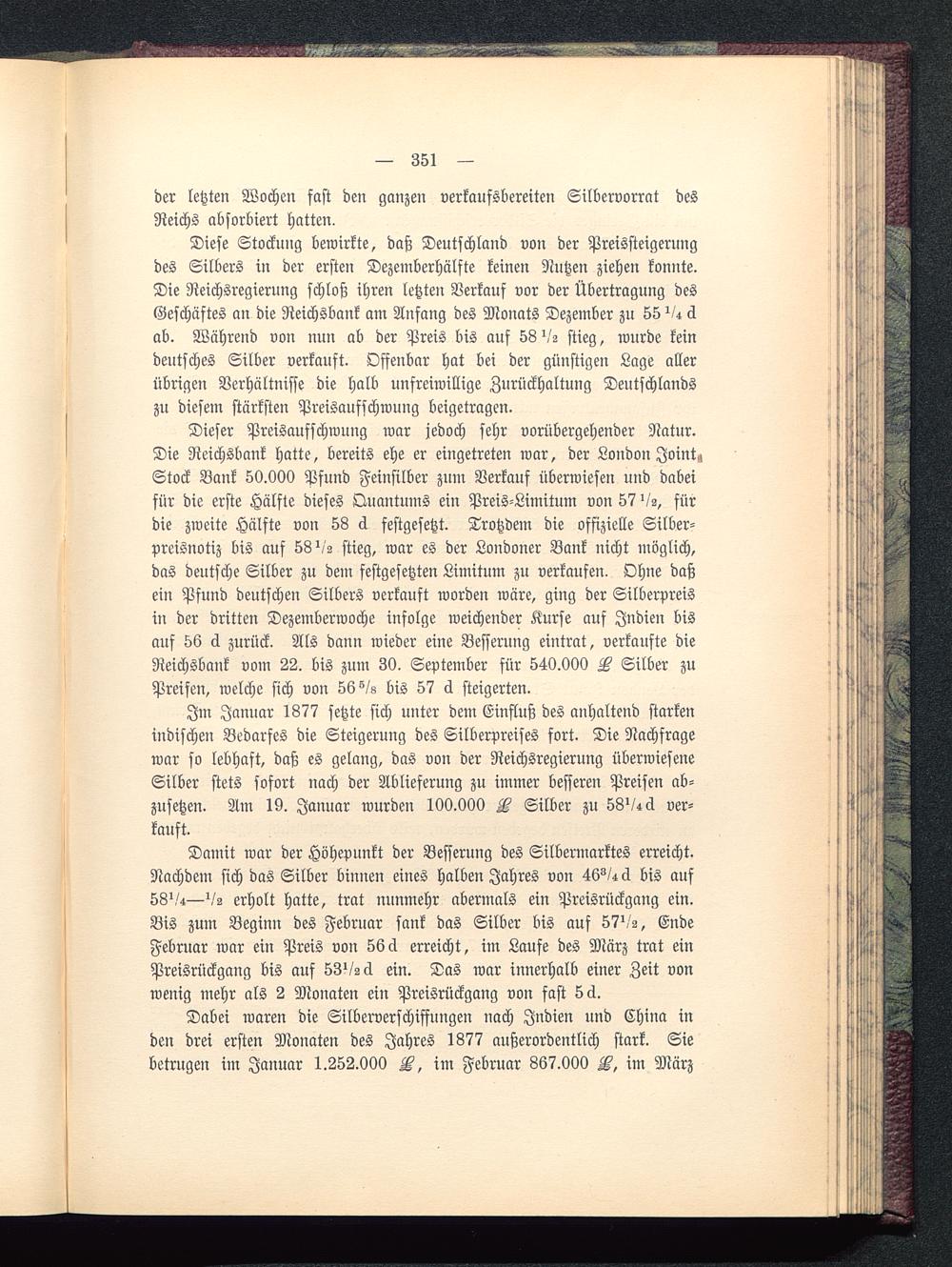 Dabei waren die Silberverschifsungen nach Indien und China inden drei ersten Monaten des Jahres 1877 außerordentlich stark. Siebetrugen im Januar 1.252.000 F, im Februar 867.000 F, im März