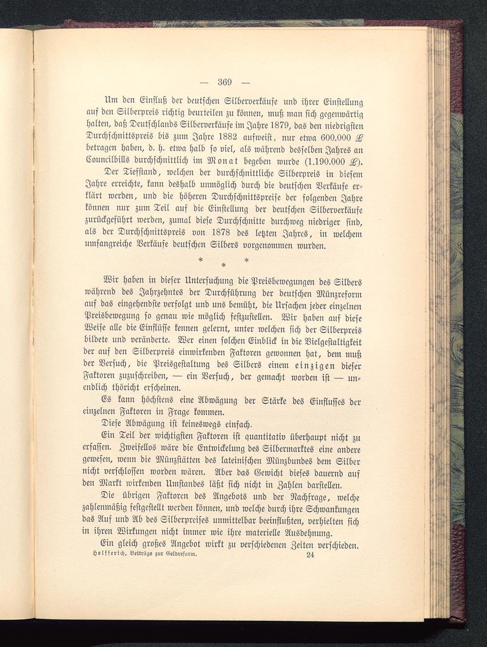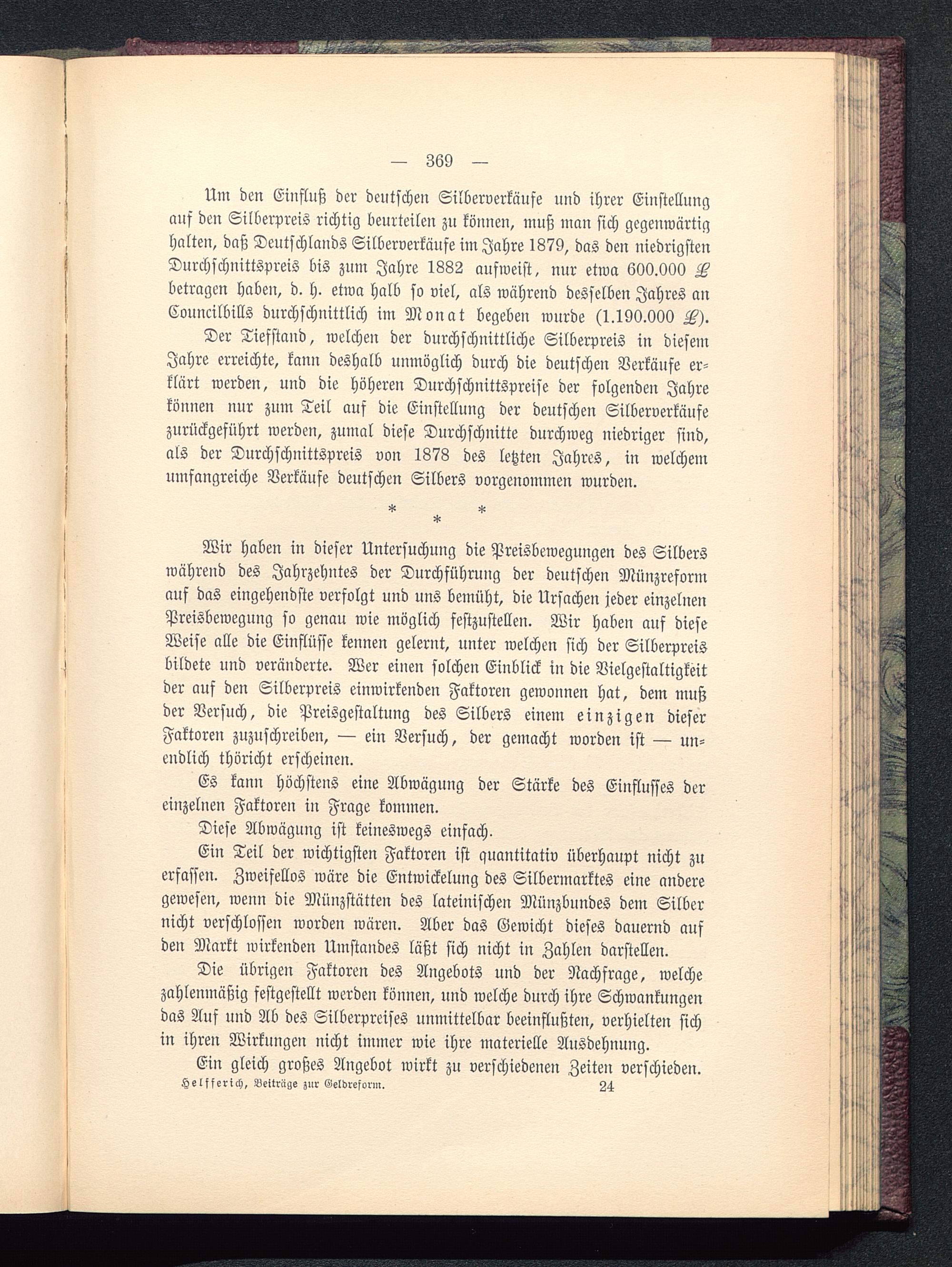 Wir haben in dieser Untersuchung die Preisbewegungen des Silberswährend des Jahrzehntes der Durchführung der deutschen Münzreformaus das eingehendste verfolgt und uns bemüht, die Ursachen jeder einzelnenPreisbewegung so genau wie möglich festzustelleu. Wir haben auf dieseWeise alle die Einflüsse kennen gelernt, unter welchen sich der Silberpreisbildete und veränderte. Wer einen solchen Einblick in die Vielgestaltigkeitder auf den Silberpreis einwirkenden Faktoren gewonnen hat, dem mußder Versuch, die Preisgestaltung des Silbers einem einzigen dieserFaktoren zuzuschreiben, — ein Versuch, der geinacht worden ist — un-endlich thöricht erscheinen.