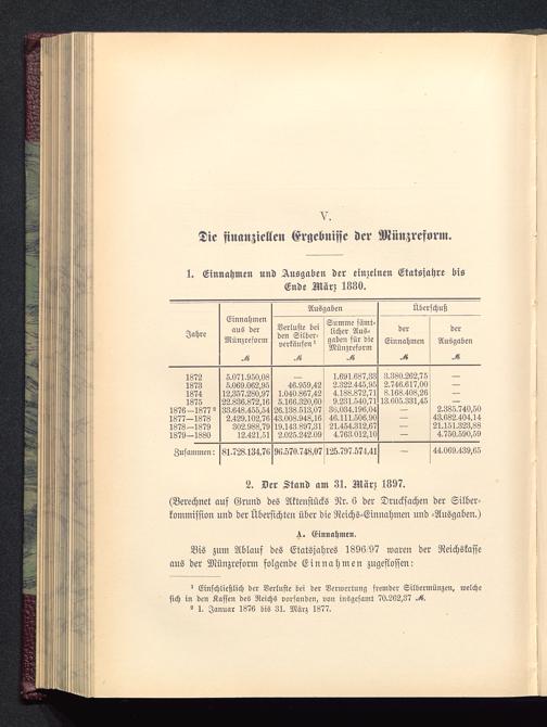 Bis zum Ablauf des Etatsjahres 1896/97 warm der Reichskasseaus der Münzreform folgende Einnahmen zugeflossen: