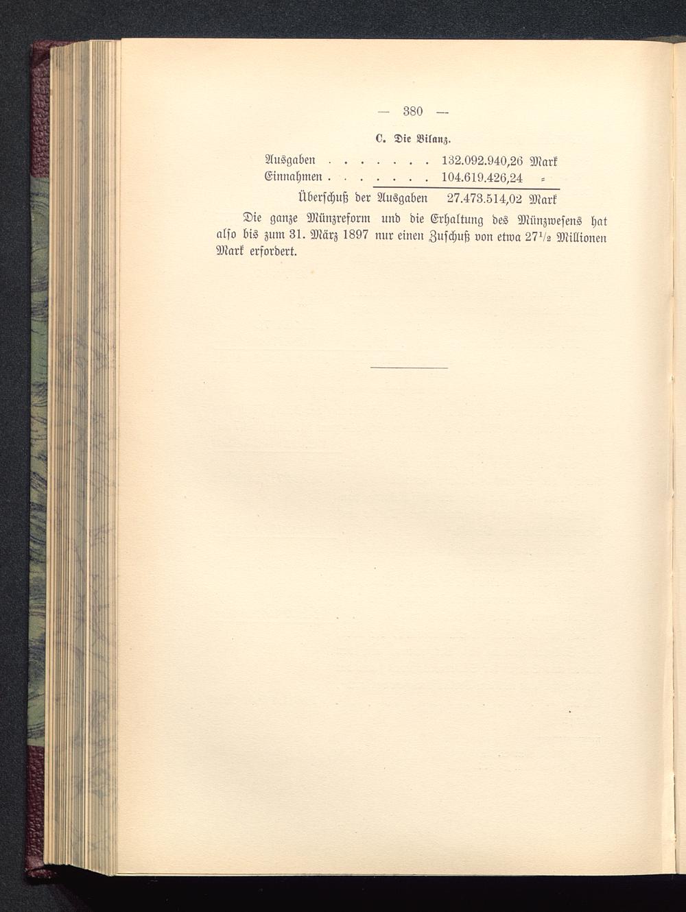 Die ganze Münzreform und die Erhaltung des Mnnzwesens hatalso bis zum 31. März 1897 nur einen Zuschuß von etwa 27Vs MillionenMark erfordert.