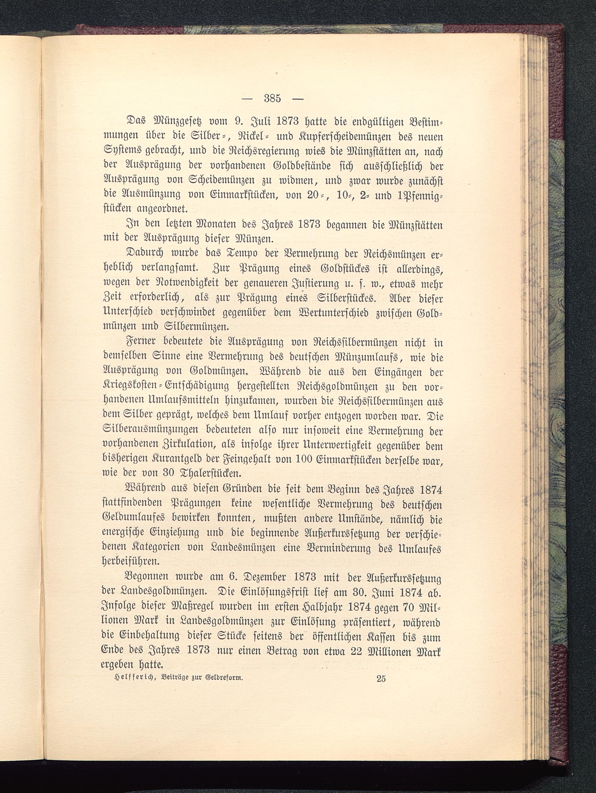 Während aus diesen Gründen die seit dem Beginn des Jahres 1874stattfindenden Prägungen keine wesentliche Vermehrung des deutschenGeldumlaufes bewirken konnten, mußten andere Umstände, nämlich dieenergische Einziehung und die beginnende Außerkurssetzung der verschie-denen Kategorien von Landesmünzen eine Verminderung des Umlaufesherbeiführen.