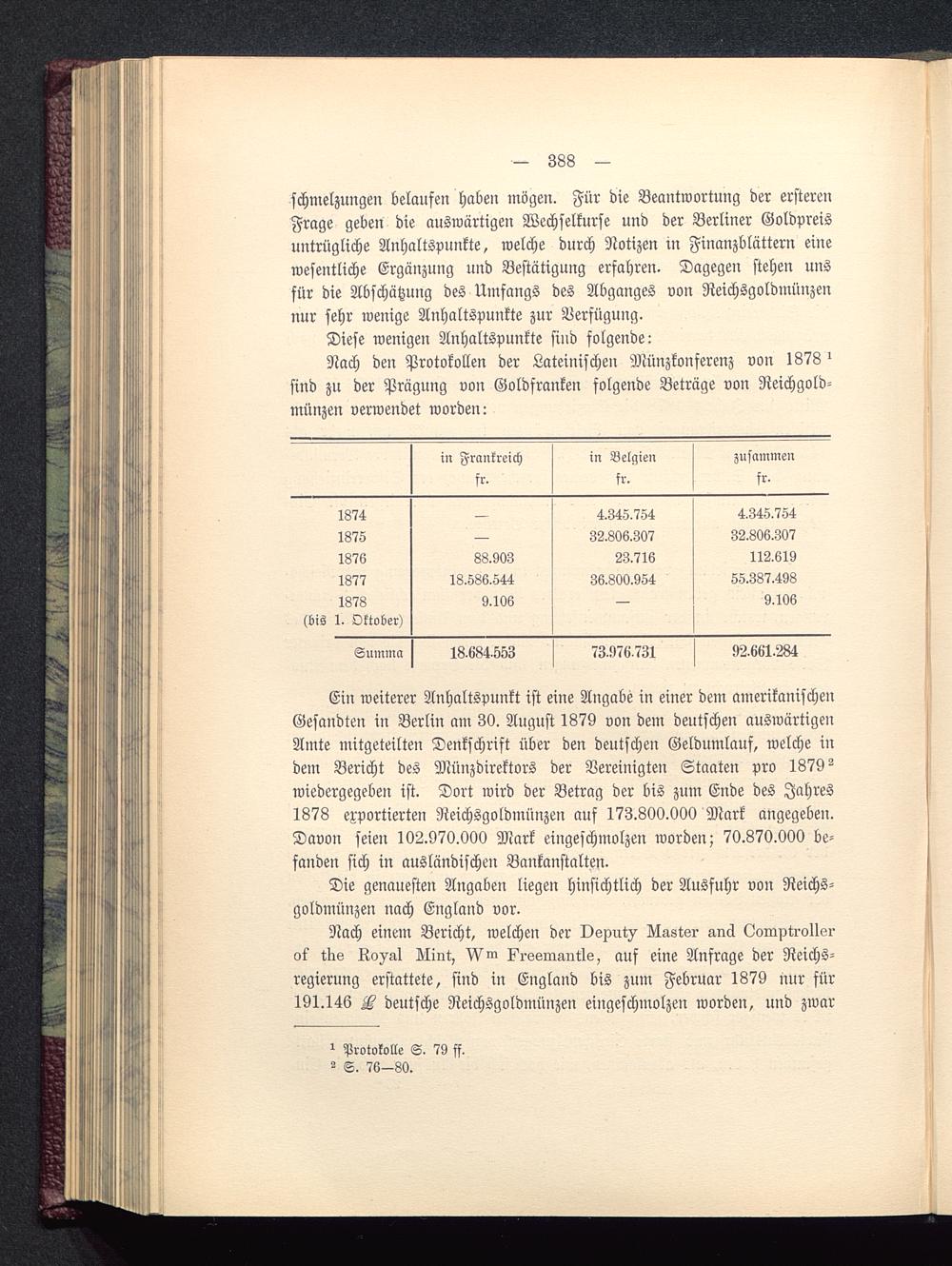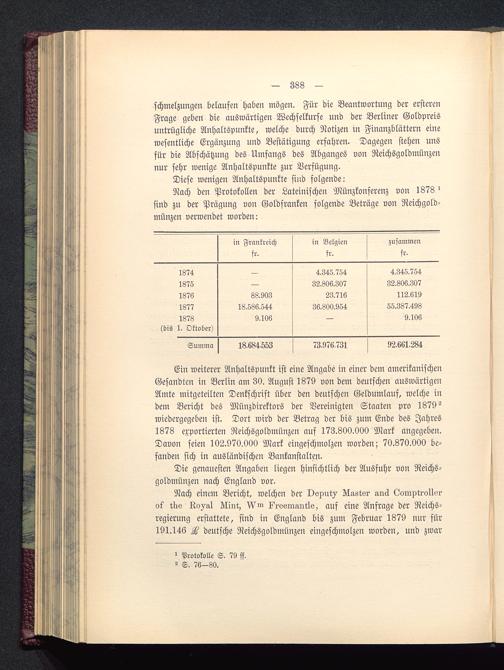 Nach den Protokollen der Lateinischen Münzkonferenz von 1878 ^sind zu der Prägung von Goldfranken folgende Beträge von Reichgold-münzen verwendet worden: