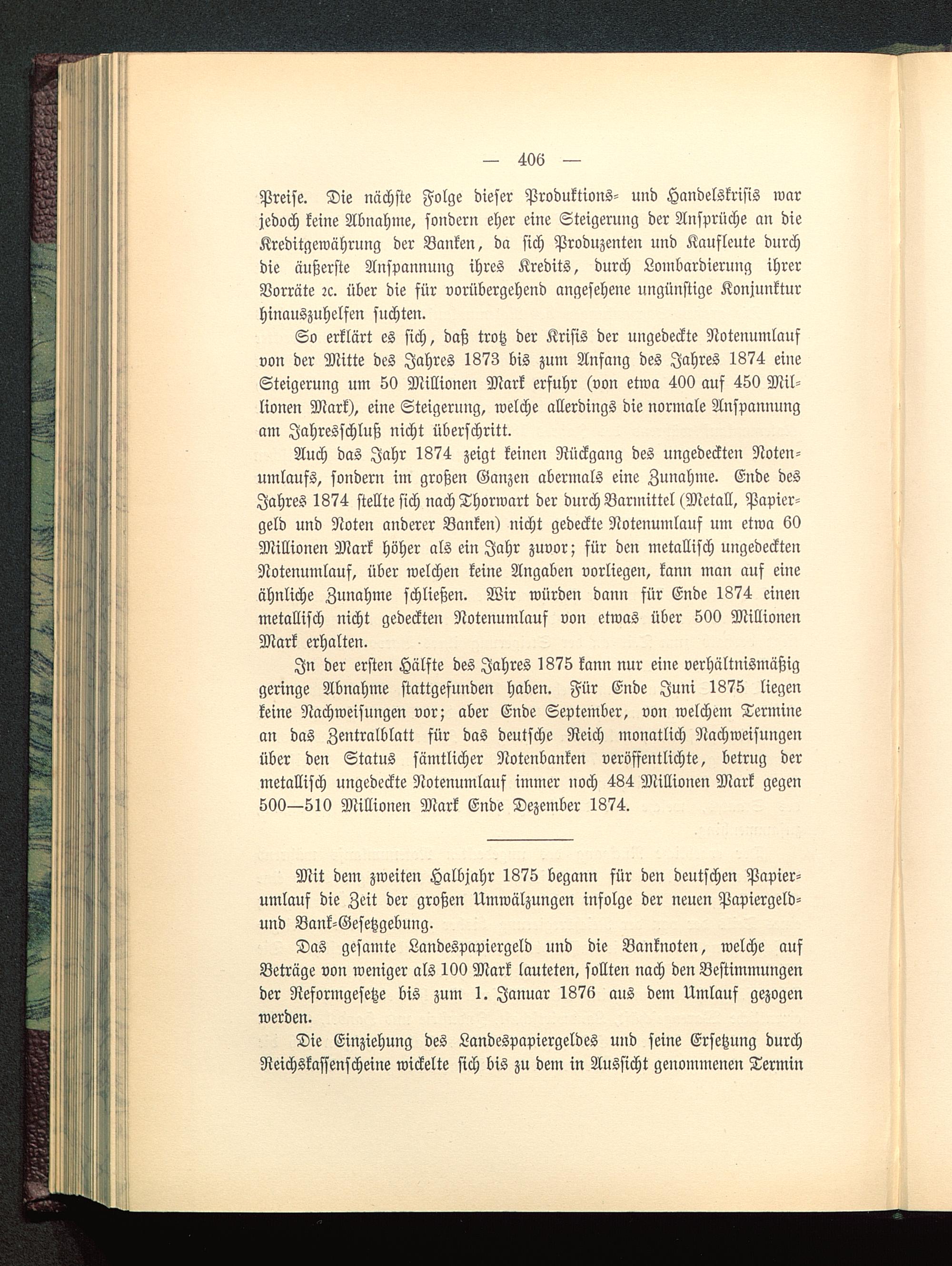 Mit dem zweiten Halbjahr 1875 begann für den deutschen Papier-umlauf die Zeit der großen Umwälzungen infolge der neuen Papiergeld-und Bank-Gesetzgebung.