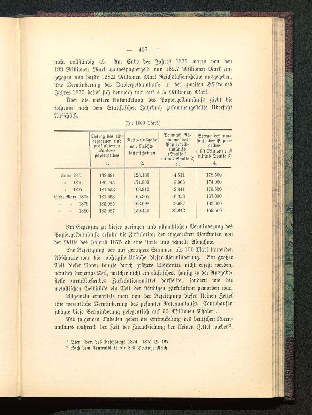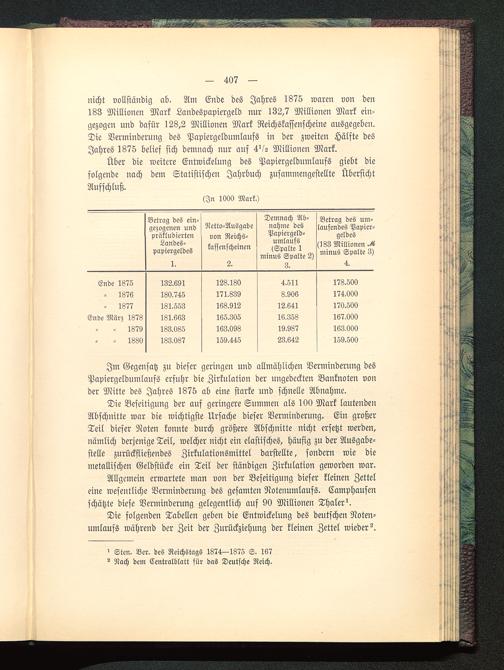 Die folgenden Tabellen geben die Entwickelung des deutschen Noten-umlaufs während der Zeit der Zurückziehung der kleinen Zettel wieder ^.