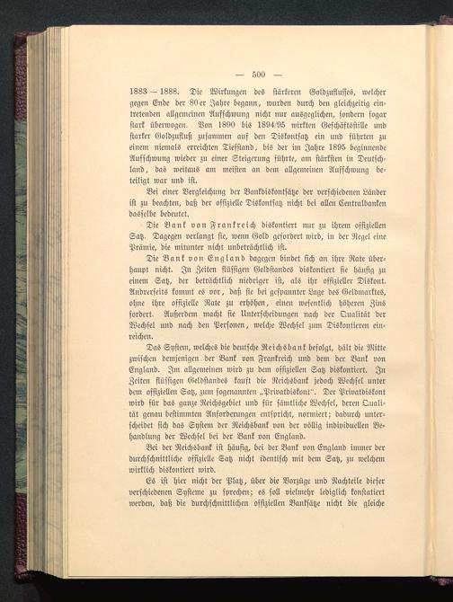 1883 - 1888. Die Wirkungen des stärkeren Goldzuflusses, welchergegen Ende der 80 er Jahre begann, wurden durch den gleichzeitig ein-tretenden allgemeinen Aufschwung nicht nur ausgeglichen, sondern sogarstark überwogen. Von 1890 bis 1894/95 wirkten Geschästsstille undstarker Goldzufluß zusammen auf den Diskontsatz ein und führten zueinem niemals erreichten Tiefstand, bis der im Jahre 1895 beginnendeAufschwung wieder zu einer Steigerung führte, am stärksten in Deutsch-land , das weitaus am meisten an dem allgemeinen Aufschwung be-teiligt war und ist.