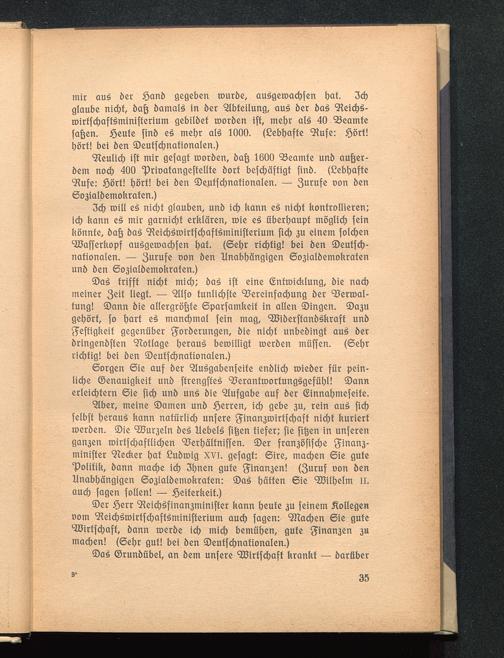 Ich will es nicht glauben, und ich kann es nicht kontrollieren;ich kann es mir garnicht erklären, wie es überhaupt möglich seinkönnte, daß das Reichswirtschaftsministerium sich zu einem solchenWasserkopf ausgewachsen hat. (Sehr richtig! bei den Deutsch -nationalen. — Zurufe von den Unabhängigen Sozialdemokratenund den Sozialdemokraken.)