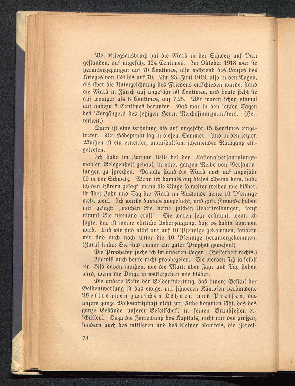 Zch will auch heute nicht prophezeien. Sie werden sich ja selbstein Bild davon machen, wie die Mark über Zahr und Tag stehenwird, wenn die Dinge so weitergehen wie bisher.