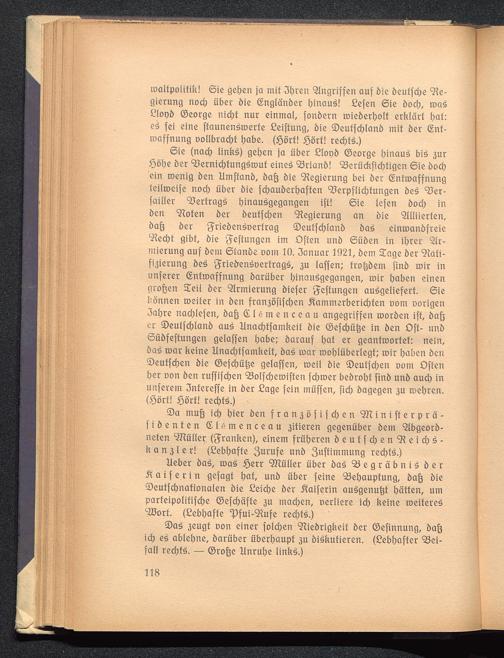 6ie (nach linkf) gehen ia über £lot)b Cöeorge hinauf bif 3urf)ohe ber Bernichfungfrouf einef 93riart6! Berückfichfigen 6ie bod)ein toenig ben Umffanb, bajj bie Regierung bei ber (Enfroaffnungteilmeife nod) über bie fchauberljaffen 9?erpflid)fungen bef Ber-failler Berfragf hinaufgegangen ift! 6ie lefen bod; inben Roten ber beuffchen Regierung an bie Alliierten,bajj ber griebenfnerfrag ©euffchlanb baf einroanbfreieRecht gibt, bie geffungen im Offen unb 6üben in ihrer Ar-mierung auf bem 6fanbe oont 10. 3anuar 1921, bem Sage ber Rati-fizierung bef griebenfoerfragf, 3U laffen; trophein finb roir inunferer (Snftoaffnnng barüber hinaufgegangen, mir haben einenoroften Seil ber Armierung biefer fteffungen aufgeliefert. Siekönnen roeifer in ben franjöfifchen ^ammerberidjten com corigen3al>re nadjlefen, bajj £ l e tn e n c e a u angegriffen roorben ift, bafjer ©eutfd)lanb auf Xlnactjtfamkeit bie ©efchüfje in ben Oft- unb©iiöfeffungen gelaffen höbe; barauf hat et geantwortet: nein,öaf mar keine Unachtfamkeif, baf mar roohlüberlegf; roir haben ben2)euffd)en bie Oefctjüü^c gelaffen, roeil bie ©eutjchen Dum Offenher öon ben ruffifdjen 23olfchemiffen fd;roer bebrohf finb unb aud; inunferem 3nfereffe in ber £age fein muffen, fich bagegen 3U mehren,(iöörf! iöörf! rechff.)