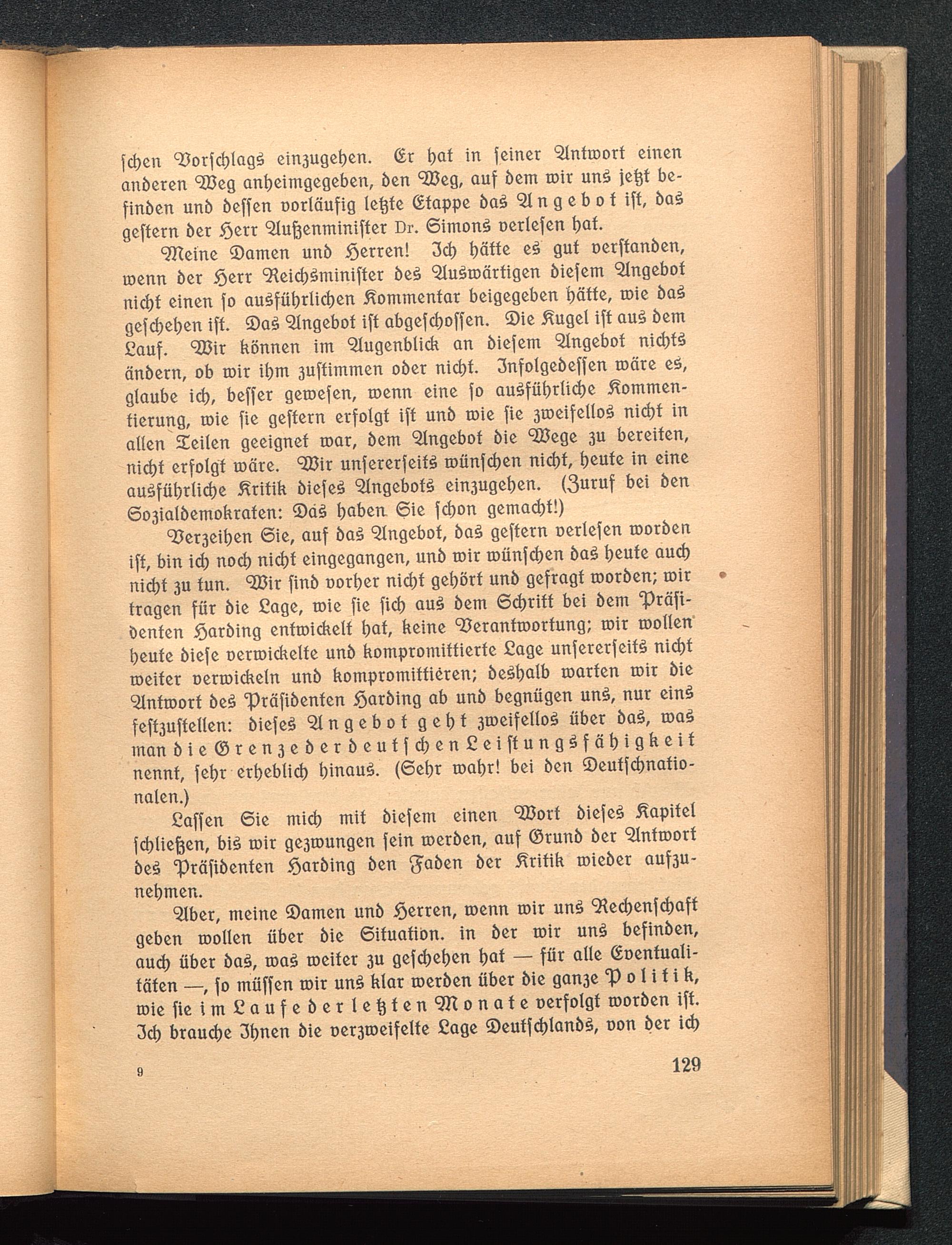 9?er3eihen 6ie, auf ba£ Angebot, baS geftern Detlefen roorbenift, bin id) noch nicht eingegangen, unb roir roünfchen baS heute auchnicht 3U tun. ^ir finb oorber nicht gehört unb gefragt roorben; roir •fragen für bie Cage, roie fie fid> auS bem Schrift bei bem 'präft-öenfen .Sarbing entroickelf hat, keine 9?eranfroorfung; roir roollenheute biefe oerroidtelfe unb kompromittierte Cage unfererfeifS nichtroeiter oerroickeln unb kompromittieren; beSbalb roarten roir bieAnfroorf beS 'präfibenfen Sarbing ab unb begnügen unS, nur einSfeft3uffellen: biefeö Angebot geht 3roeifello£ über ba£, roa£man bie@ren3eberbeuffd)en£eiftungSfähiflkeifnennt, fehr erheblich hinaus. (6ehr roabr! bei ben ©euffcbnafio-nalen.)