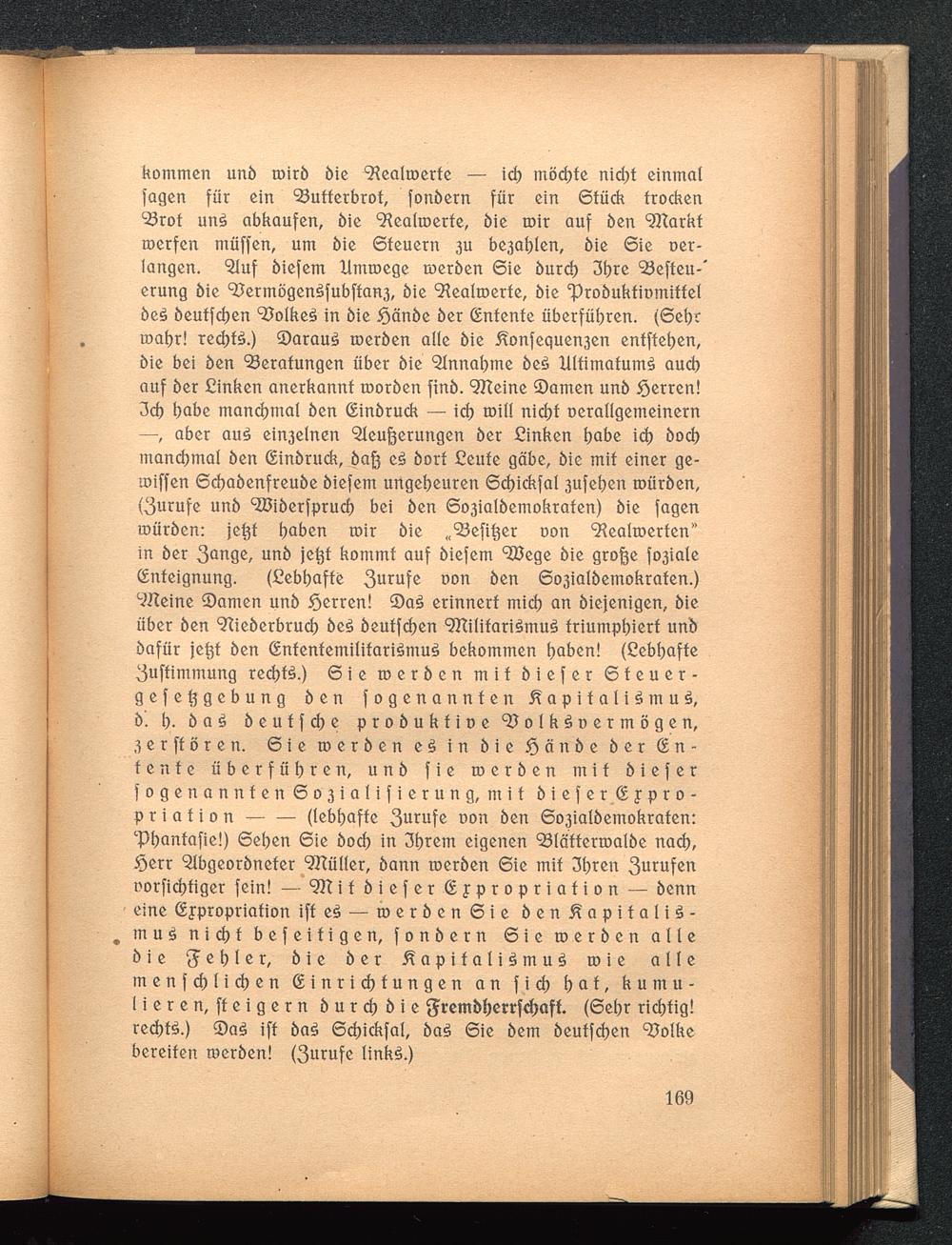 'Phantafie!) Sehen Sie boch in 3brem eigenen Bläfferroalbe nach,Serr ?lbgeorbneter 9Hüller, bann roerben Sie mit 3bten 3 uru fenoorfichtiger fein! — 9Jt i f biefer Sfpropriafion — benneine Sypropriation iff e3 — roerben Sie ben^apifaliS-# m u 3 nicht befeifigen, fonbern Sie roerben allebie gebier, bie ber Kapitalismus roie allemenfd)lichen (Einrichtungen an f i ch hat/ kumu-lieren, fteigern burchbie gretnbf)errfd)aff. (Sehr richtig!rechte.) ©aS iff baS Schickfal, baS Sie bem beutfehen Bolkebereifen roerben! (3urufe links.)