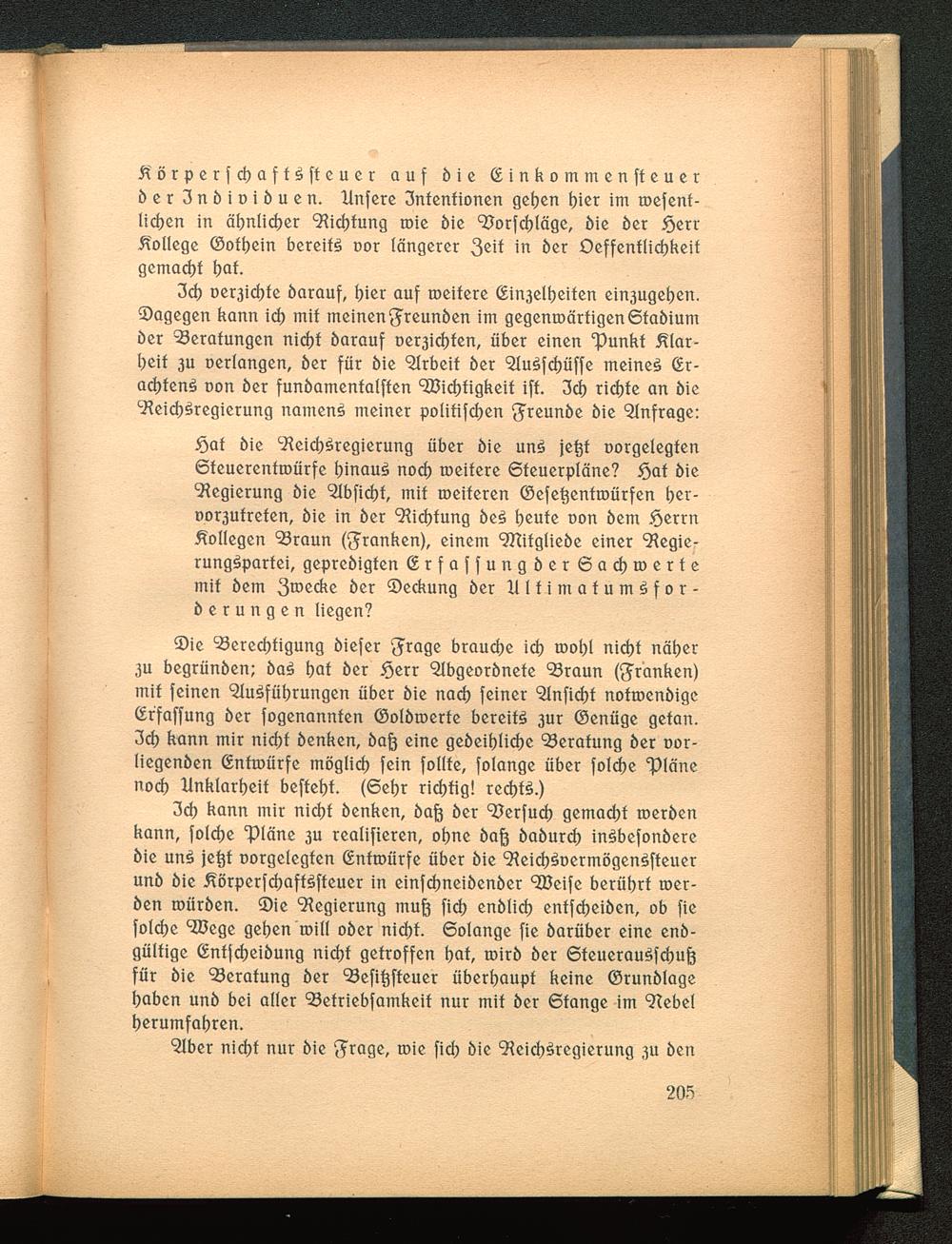 3cb oer3id)fe barauf, t>ier auf weitere (Ein3elbeiten ein3uget>en.Sagegen kann ich mif meinen greunben im gegenwärtigen 6tabiumber Beratungen nicht barauf Berichten, über einen 'Punkt Älar-beif 3U uerlangen, ber für bie Arbeit ber AuSfchüffe meines (Er-achtend non ber funbamentalften c JDid)tigkeit ift. 3cb richte an bieReicbSregierung namens meiner politifeben greunbe bie Anfrage: