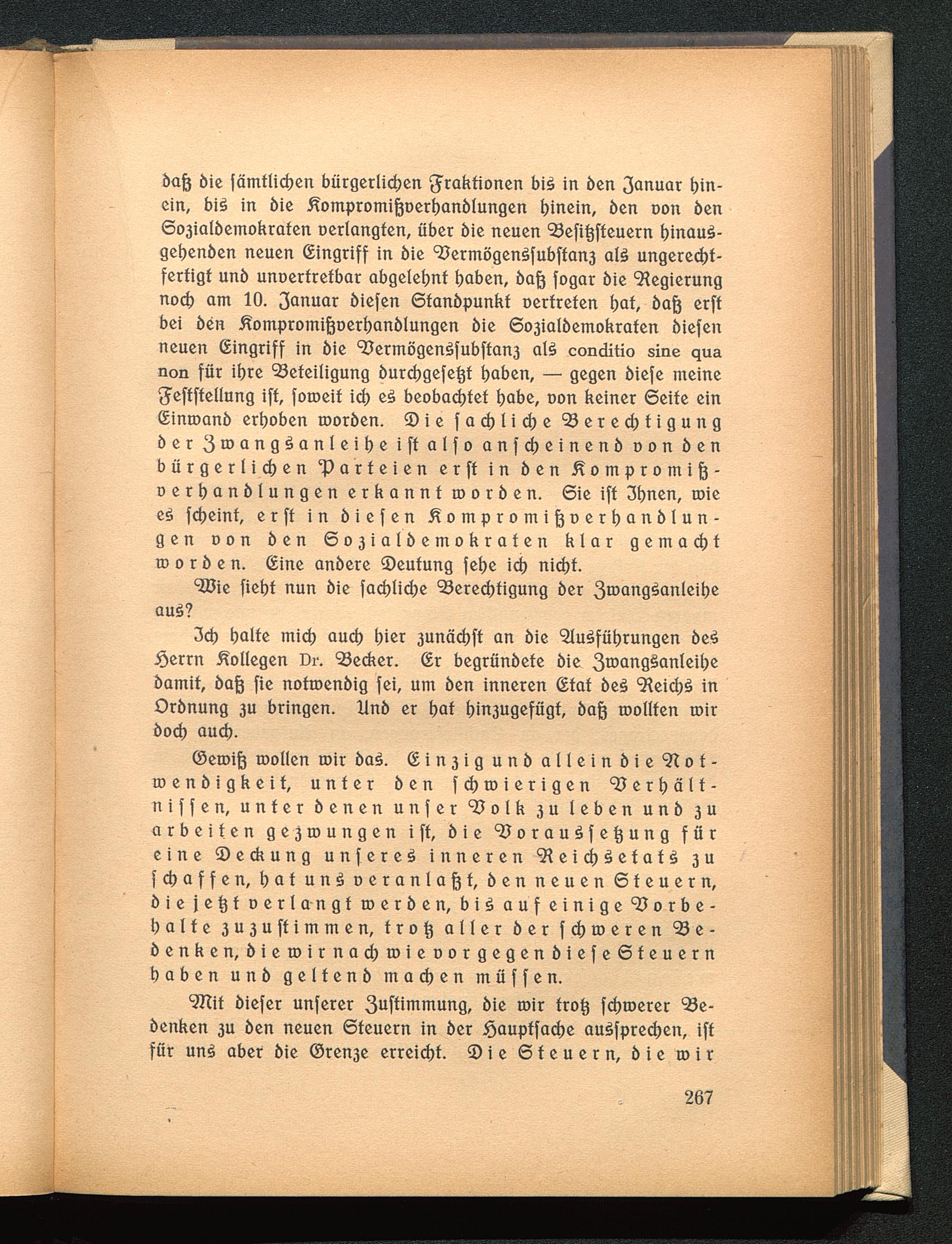 3ch halte mich auch hier 3unäd)ft an öie Ausführungen öeSSenn Kollegen Dr. Becker. (Er begrünöete öie SroangSanleiheöamit, öafj fie notroenöig fei, um öen inneren ©tat öeS Geichs inOrönung 3U bringen. Unö er hat hin3ugefügt, öafj roollten toiröod) auch.