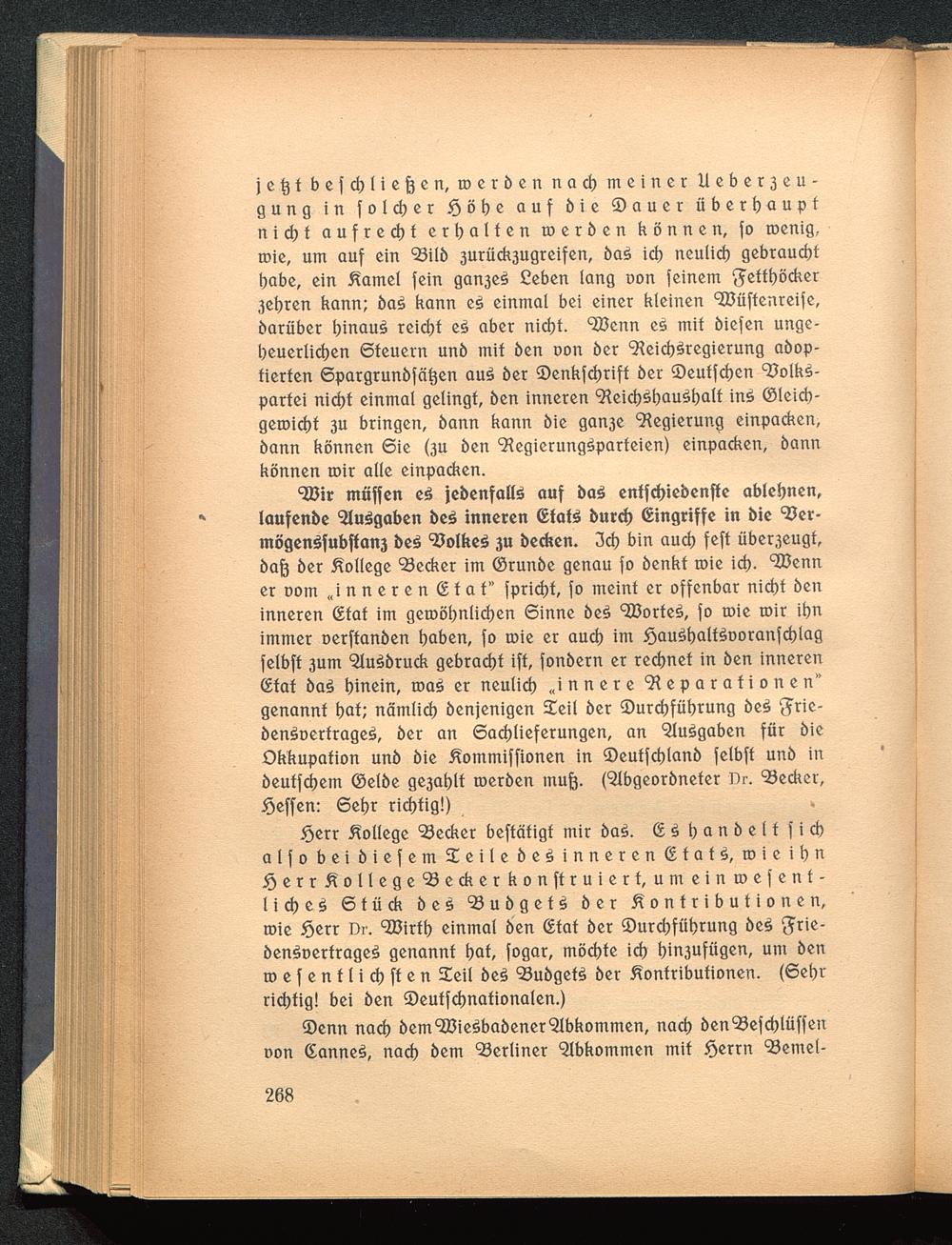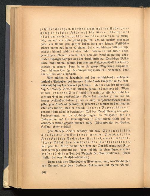 c 2öif muffen e$ {ebenfalls auf baS entfd)iebenffe ablehnen,laufenbe Ausgaben beS inneren (Etats buref) Eingriffe in bie 'ZJer-mögenSfubftan3 beS Volkes 3U beefeen. 3d) bin aucl) feft übeqeugt,baft 6er College 93ecker im ©runbe genau fo benkt roie id). 'JDenner uom „inneren (Etat" fprid)t, fo meint er offenbar nicf)t beninneren (Etat im geroöl)nlict)en Sinne beS Portes, fo roie roir ibnimmer oerftanben baben, fo roie er aucl) im £auSl)altSDoranfd)lagfelbft 3um "StuSbruck gebracht ift, fonbern er rechnet in ben inneren©tat baS hinein, roaS er neulicl) „innere Reparationen"genannt t)at; nämlicl) benjenigen Seil ber ®urcf)füf)rung beS Srie-benSoertrageS, ber an 6ad)lieferungen, an Ausgaben für bieOkkupation unb öie Kommiffionen in 2)eutfd)lan6 felbft unb in6euffd)em ©elbe ge3al)lt toerben inuft. (5Ibgeorbneter Dr. 93ecker,JÖeffen: 6el)r richtig!)