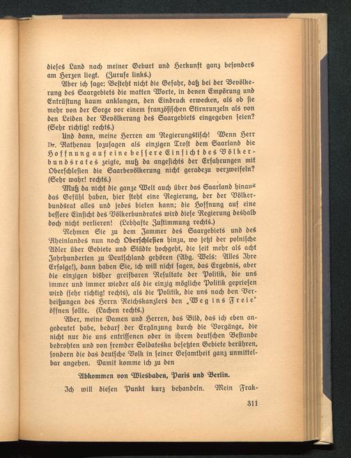 Unb bann, meine Herren am 9Ugierung£tifcf)! VJenn irjerrDr. ^afbenau fo3ufagen aB ein3igen Sroft bem Saarlanb bieHoffnung auf eine beffere <£ i n f i d) f b e 3 Völker-bunb£rate§ 3eigfe, muß ba angefid)t3 ber (Erfahrungen mitOberfdjlefien bie Saarbeoölkerung nicht gerabe3U oer3roeifeln?(Sehr roabr! red)t§.)