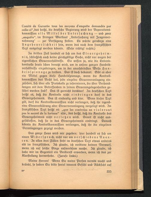 ©aS gan3e SauS toirb mir 3ugeben: hier hanbelt eS fich umeinen ^iberfpruch, nicht nur umoerfchiebene^tuan-c e n. 3n allen brei gallen fteht im beutfehen 2ejt etroaS anbereSals im fran3öfifchen. 3ch glaube, ich oetbiene keinen 99ortourf,toenn ich auf folche ©inge aufmerkfam mache. 3ch glaube, ichhabe mir im ©egenteil ein 9?erbienft erroorben, roenn ich baS 3urÄlarftellung heroorhebe. (3urufe links.)
