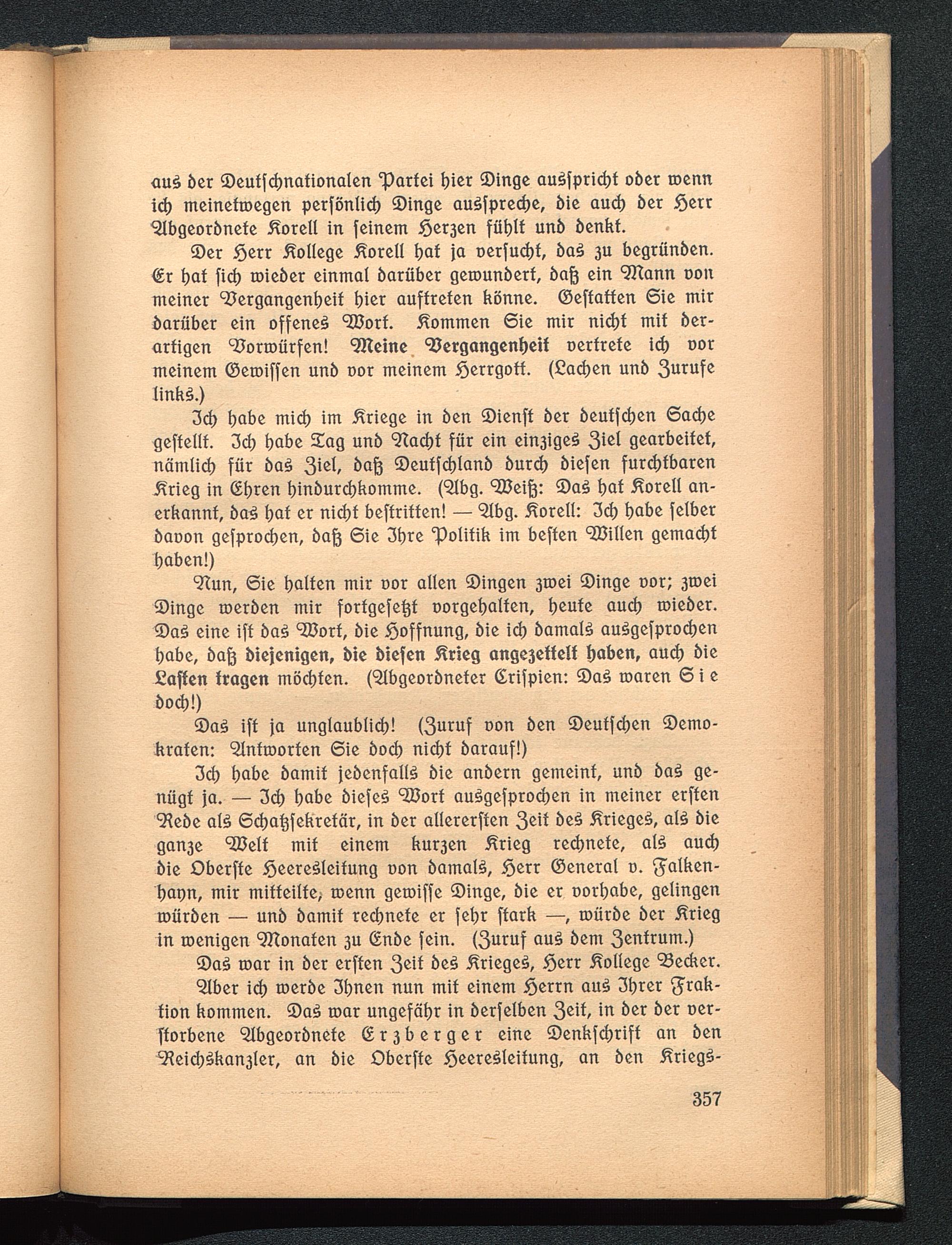 3cf) habe mich im Kriege in ben Sienft ber beutfd)en Sachegeffellf. 3cb tjabe Sag unb 'JTacht für ein ein3igeö 3^1 gearbeitet,nämlich für ba£ 3iel Seutfchlanb burd) biefen furchtbaren^rieg in Oetzen hinburebkomme. (Qlbg. VJeifo: Sa£ tjaf Äorell an-erkannt, ba3 tjaf er nicht beffriften! — Qlbg. Äorell: 3d) habe felberbaoon gefprochen, baft Sie 3hre "Politik im beften Hillen gemachthaben!)