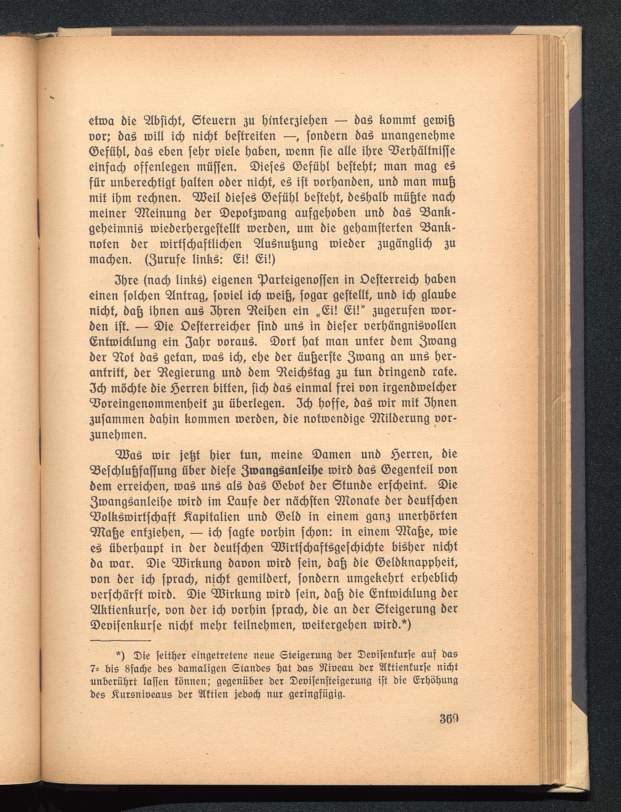 <28aS roir je^f hier tun, meine ©amen unb Herren, bie93efd)lußfaffung über biefe 3®angöanleihe toirb ba3 ©egenfeil oonbem erreichen, toaS uns» aB bas> ©ebof ber 6funbe erfcheinf. 2)ie3toang£anleibe toirb im Caufe ber nächften 9Konafe ber beuffdjenVolkötoirffchaff Kapitalien unb ©elb in einem gan3 unerhörten9Haße enf3iehen, — ich fagte oorhin fchon: in einem 9Ka^e, toiees? überhaupt in ber beuffdjen C 333irffchaffögcfd)id)fe bisher nidjtba toar. ®ie Wirkung baoon toirb fein, baft bie ©elbknappbeif,non ber ich fprad), nicht gemilberf, fonbern umgekehrt erbeblichoerfd)ärff toirb. ©ie Wirkung toirb fein, bafo bie (Enftoicklung ber5lktienkurfe, oon ber ich oorhin fprach, bie an ber Steigerung ber©eoifenkurfe nicht mehr feilnehmen, toeifergehen toirb.*)