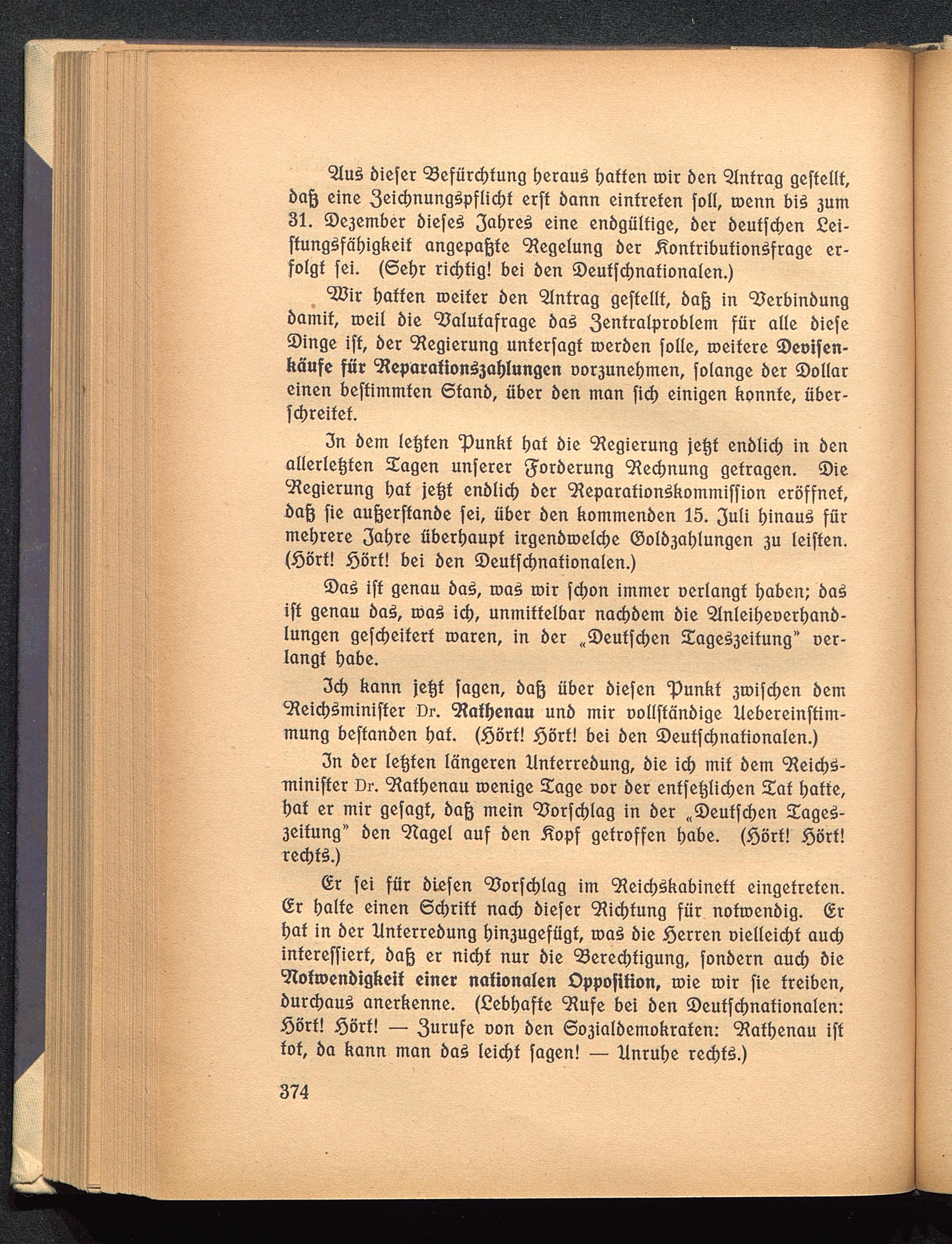 "SluS biefer 93efürcf)fung heraus hoffen mir ben Eintrag geftetlf,bafj eine 3 ß id)nung£pflicbt erff bann eintreten foll, toenn bi§ 3um31. S)e3embcr öiefe^ 3abre£ eine enbgülfige, ber beuffcfjen £ei-ffungSfäbigkeif angepaßte Regelung ber ÄonfribufionSfrage er-folgt fei. (6ebr ridjtig! bei ben ©euffchnafionalen.)