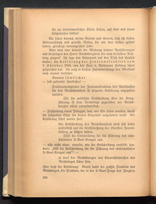 <2lber roaij mar barnalS bie Wirkung meiner "2lu3fübrungenunb berjenigen beS Serrn 9?eicb£kan3ters>, bie nacb berfelben ^id)-tung gingen? 3cb lege baS ©okument auf ben Sifcb be§ ßaufeänieber: bie (Erklärung ber 3 cn t rum ^f ra kfion com7. Oktober 1916, t>on ber iöerr d . Selbmann ioollroeg fd;ongefproeben bat 3d; muf} in biefem 3ufatnmenbange ben Wortlautnod; einmal oerlefen: