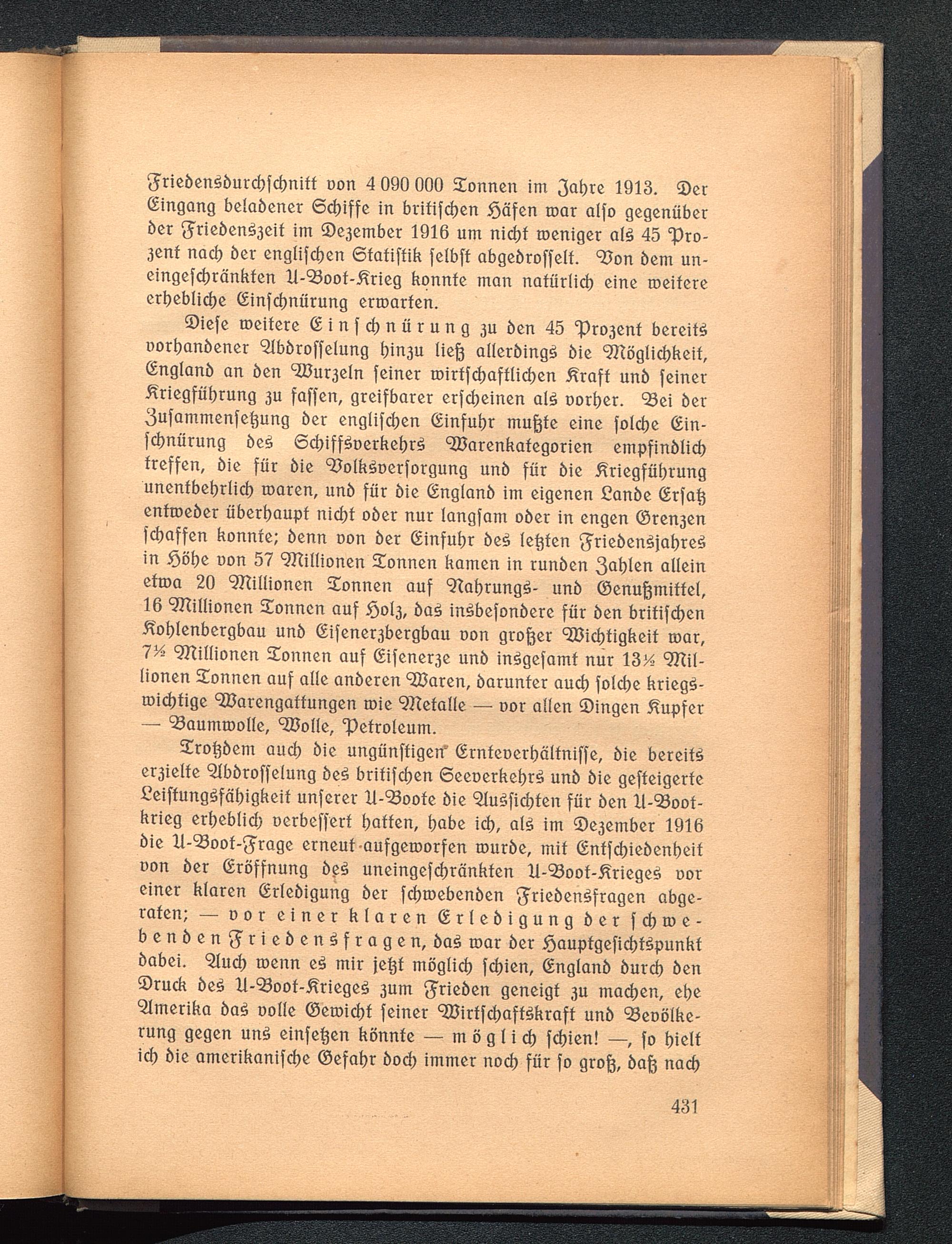 griebenöburcbfchnitf oon 4 090 000 Sonnen im 3ohte 1913. ®erSingang belabener ©chiffe in brififchen öäfen roar alfo gegenüber5er grieben^eit im ®e3ember 1916 um nicht roeniger als 45 'Pro-3enf nach ber englifchen 6fatiftik felbft abgebroffelf. 93on bem un-eingefchränkfen ll-93oot-Krieg konnte man natürlich eine roeitereerhebliche (Einfchnürung erroarten.