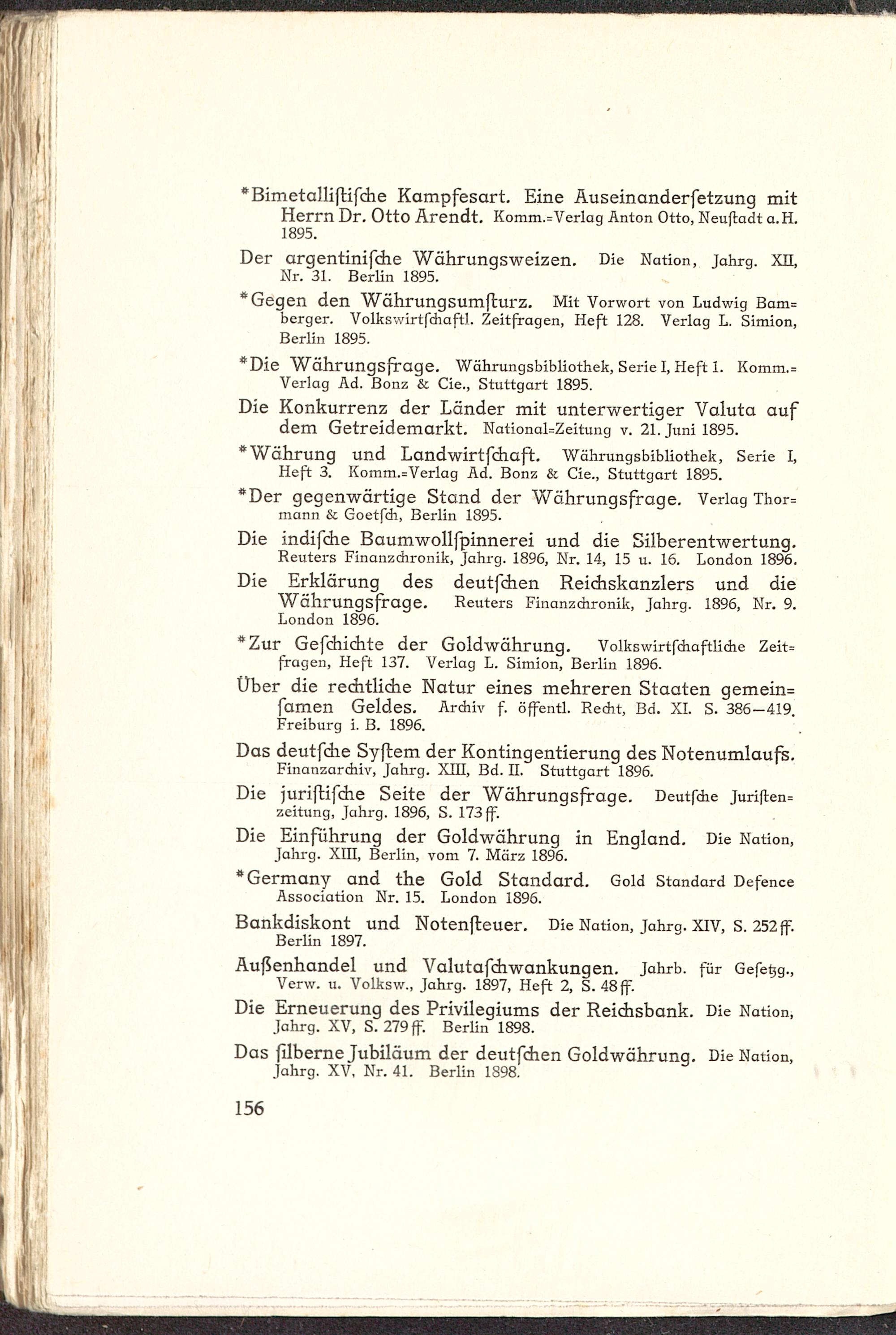 *Die Währungsfrage. Währungsbibliothek, Serie I, Heft 1. Komm.=Verlag Ad. Bonz & Cie., Stuttgart 1895.