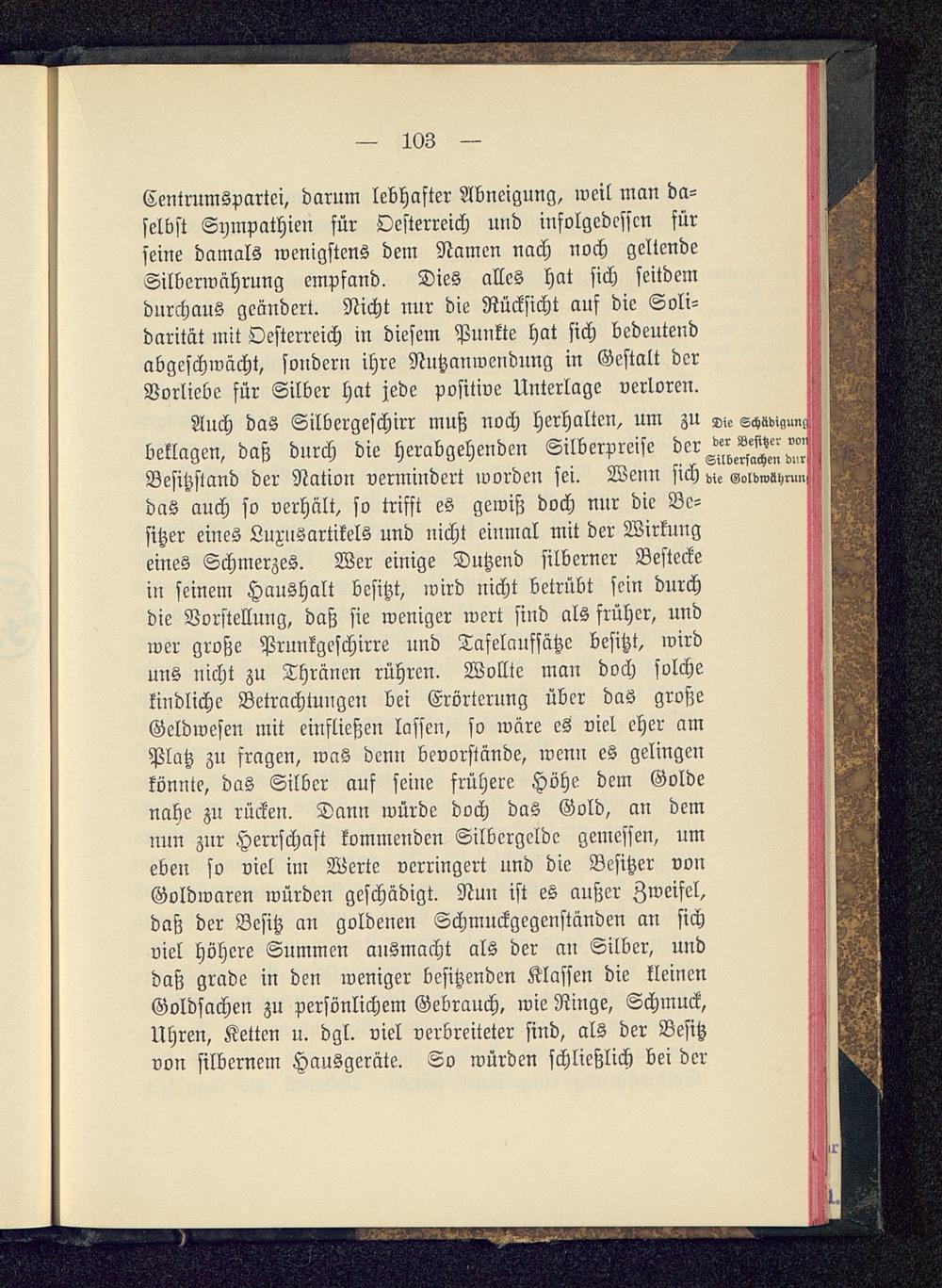 Centrumspartei, darum lebhafter Abneigung, weil man da-selbst Sympathien für Oesterreich und infolgedessen fürseine damals wenigstens dem Namen nach noch geltendeSilberwahrung empfand. Dies alles hat sich seitdemdurchaus geändert. Nicht nur die Rücksicht auf die Soli-darität mit Oesterreich in diesem Punkte hat sich bedeutendabgeschwächt, sondern ihre Nutzanwendung in Gestalt derVorliebe für Silber hat jede positive Unterlage verloren.