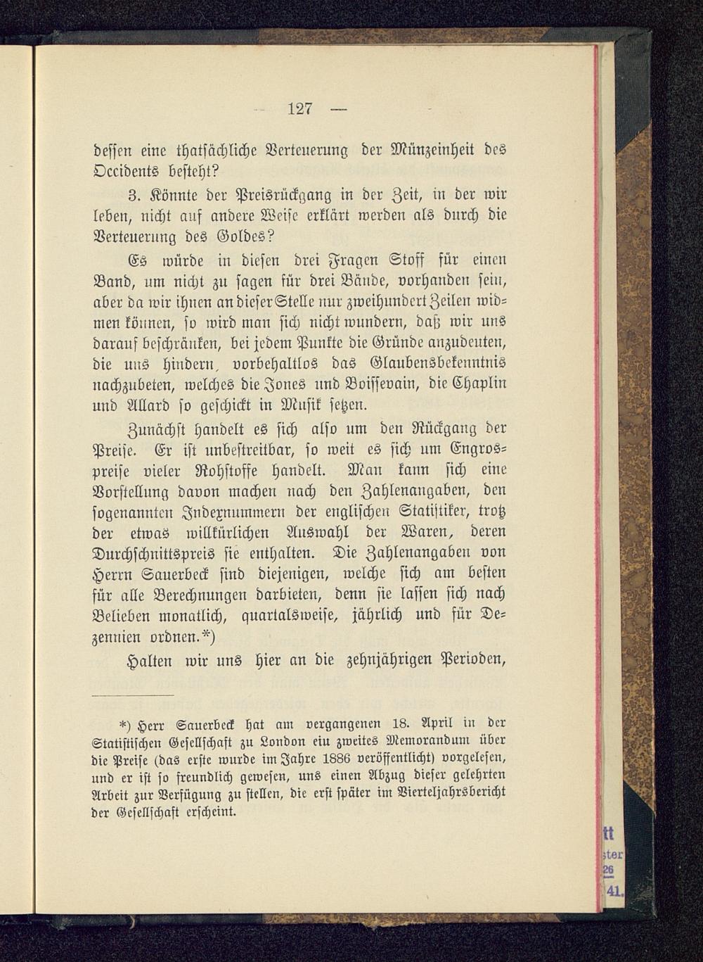 *) Herr Sauerbeck hat am vergangenen 18. April in derStatistischen Gesellschaft zu London ein zweites Memorandum überdie Preise (das erste wurde im Jahre 1886 veröffentlicht» vorgelesen,und er ist so freundlich gewesen, uns einen Abzug dieser gelehrtenArbeit zur Verfügung zu stellen, die erst später im Vierteljahrsberichtder Gesellschaft erscheint.