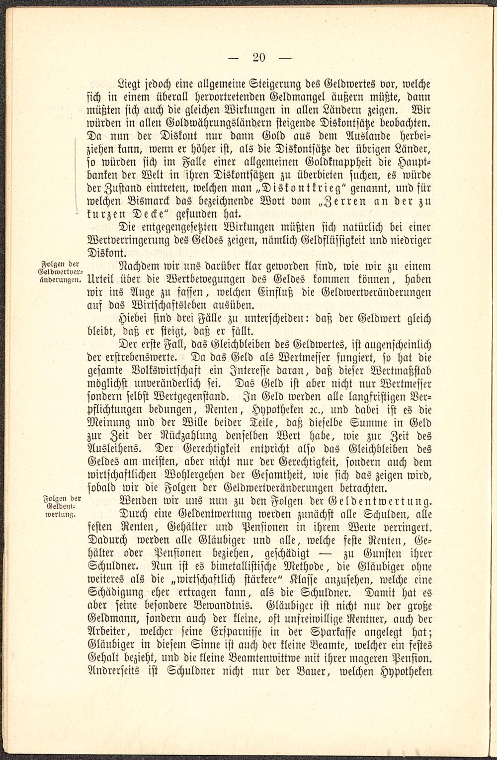 festen Renten, Gehälter und Pensionen in ihrem Werte verringert.Dadurch werden alle Gläubiger und alle, welche feste Renten, Ge-hälter oder Pensionen beziehen, geschädigt — zu Gunsten ihrerSchuldner. Nun ist es bimetallistische Methode, die Gläubiger ohneweiteres als die „wirtschaftlich stärkere" Klasse anzusehen, welche eineSchädigung eher ertragen kann, als die Schuldner. Damit hat esaber seine besondere Bewandtnis. Gläubiger ist nicht nur der großeGeldmann, sondern auch der kleine, oft unfreiwillige Rentner, auch derArbeiter, welcher seine Ersparnisse in der Sparkasse angelegt hat;Gläubiger in diesem Sinne ist auch der kleine Beamte, welcher ein festesGehalt bezieht, und die kleine Beamtenwittwe mit ihrer mageren Pension.Andrerseits ist Schuldner nicht nur der Bauer, welchen Hypotheken